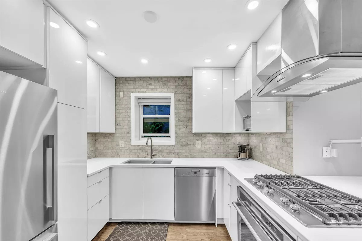 Beautifully renovated 2-bed townhome blends refined design with unbeatable walkability. 2 blocks from W 4th’s vibrant shops and cafés and mins. from Kits Beach. The chef’s kitchen flows into a spacious living space with gas fireplace and direct access to a private, south-facing patio. A bright bed and full bthrm are located on the main level, while the upper level is dedicated to a spacious primary retreat complete with custom built-ins and a sophisticated ensuite featuring a new vanity, quartz counters, and a double walk-in shower. Renovations completed with permits in 2018, including a new hot water tank. Quiet, well-managed 4-unit strata, low monthly fees. Included: wall-mounted 64” LG TV (like new), BBQ, double Murphy bed, shared bike room, and ample in-unit storage.