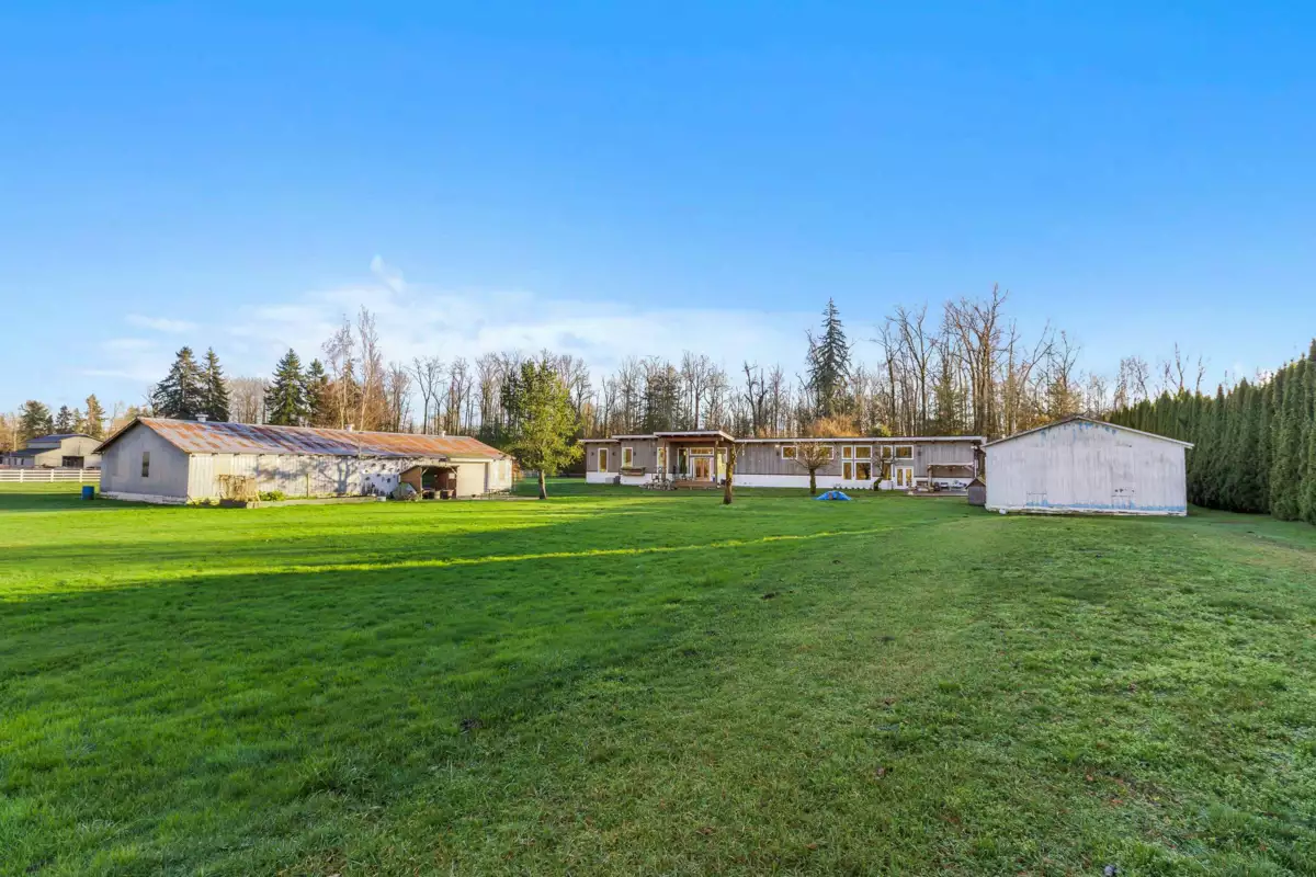 A truly one-of-a-kind beauty! Custom 2011 finished RANCHER with 2400+ square feet of living space. You will appreciate the abundance of heated (in-floor heating) garage space attached to house. Garage is nearly 2850 square feet and features SIX garage doors including two allowing for RVs. Sitting on a flat 5 acres with lots of room to expand and stretch out. Separate 3700+ square foot detached shop with power and 765 square foot carport – ample room for all your vehicles and toys. Other features include massive concrete parking area in front, two bedrooms with ensuites, backyard patio area and much more. Nice location in Otter District of South Langley – quiet and private!