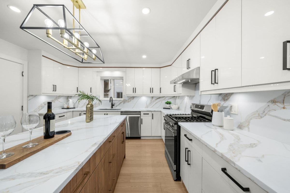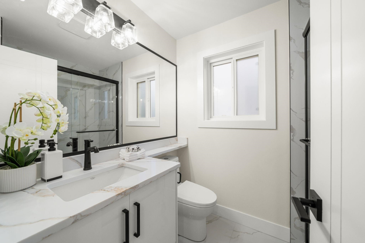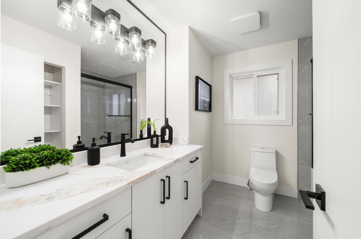 MOVE IN READY! This beautifully transformed 4 bedroom, 3.5 bathroom home offers over 3,000 sq. ft. of living space on a generous 7,200 sq. ft. lot, making it perfect for families. Extensive upgrades include new plumbing, new flooring throughout, a brand new kitchen with top-of-the-line stainless steel appliances and a built-in microwave, updated bathrooms, fresh interior paint, and new exterior siding. The main level features a spacious rec room for upstairs use, while the lower level includes a bright 1 bedroom suite with its own private entry and in-suite laundry, plus the option to convert into a 2 bedroom suite! Detached shop provides excellent storage and parking for vehicles, toys, or tools. Located on a quiet street close to schools, parks, shopping, and with easy highway access.
