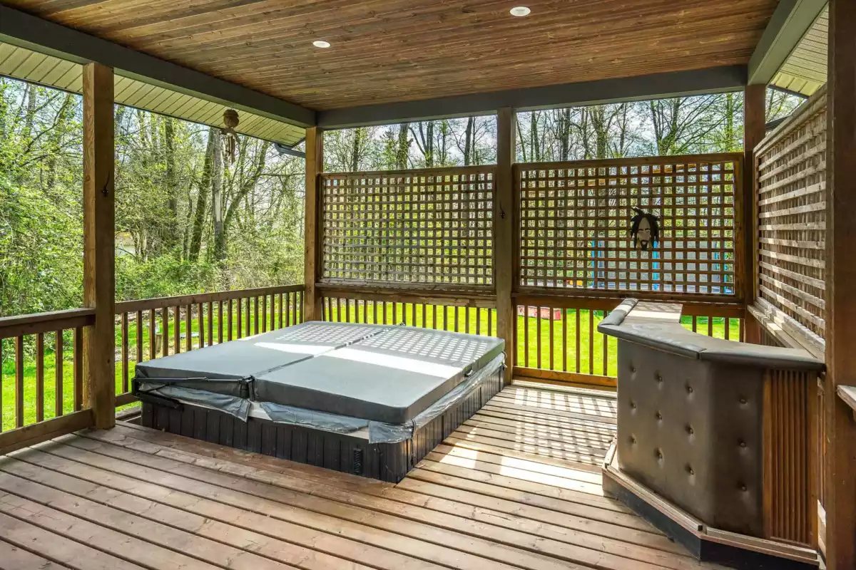 RARE FIND - Ideal Multi-Generational Living! 2 full homes (one with a suite) each with sep gated driveways & workshops on Beautiful Private Parklike 5.12 acre back to nature retreat & quiet no thru street. Main home - 2844 sf custom split w/Warmth & Character, vaulted skylit ceilings, hardwood floors, loads of windows in sun-drenched living rm & Country kitchen. Primary w/vaulted ceilings & jetted soaker tub ensuite. Bsmt w/large games rm & kitchen - great in-law suite. Gardens & chickens - potential farm taxes. Zoning allows kennels & 3 commercial trucks. 42x27 4 car drive-thru garage & 41x26 drive-thru Truck/RV shop w/17’ ceilings. Beautiful 1915 sf open plan 4 bedrm rancher w/wraparound veranda & 28x22 garage/shop w/11’ ceiling. Primary w/deluxe ensuite & sliders to hot tub. A must see!