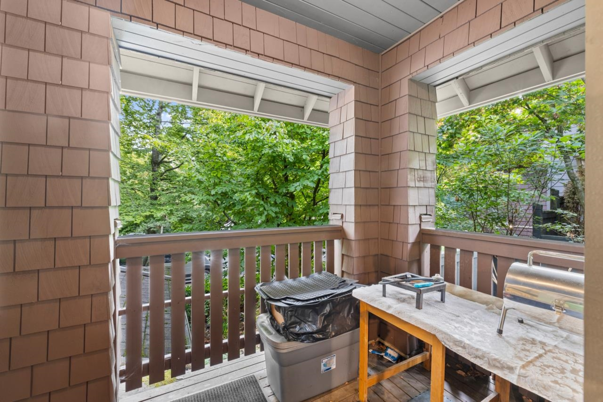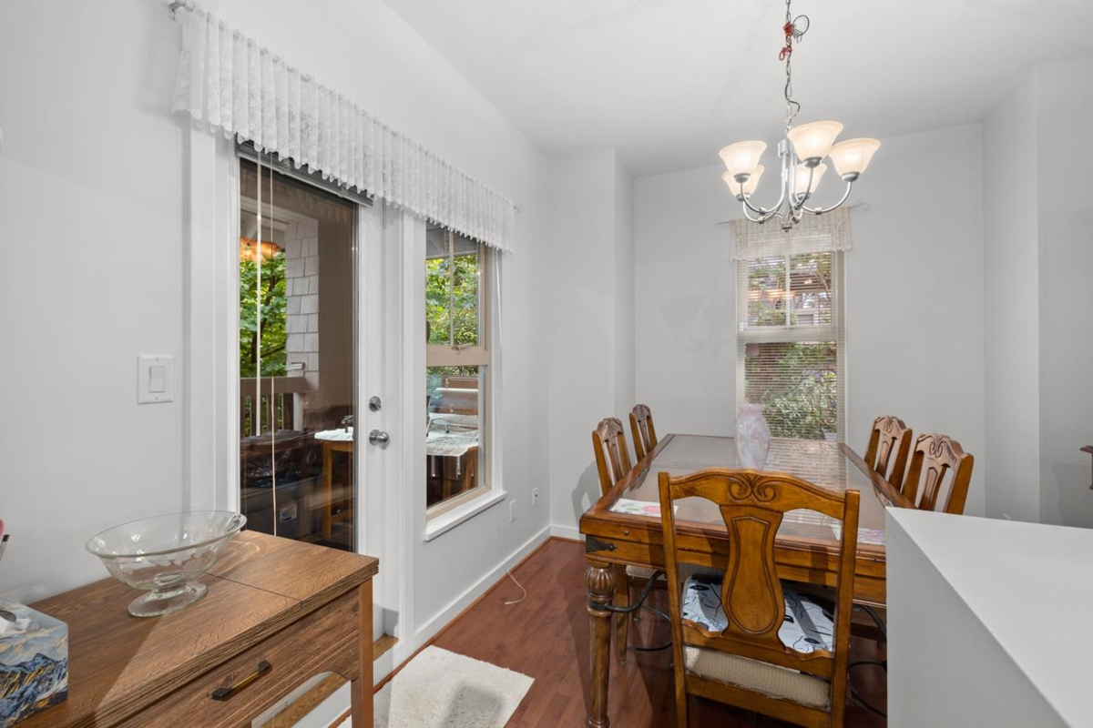 Welcome to this bright and updated corner townhome in one of New Westminster's most sought-after communities. Steps from Royal Square, Queens Park, and the Aquatic Centre. Situated on 2-levels this home offers a lifestyle of ease, access, and everyday comfort. The functional, thoughtfully designed layout features two bedrooms, full bath, and laundry above the main, with an updated kitchen and eating area thoughtfully separated from the open living and dining space, The end unit orientation brings in extra natural light and includes a covered balcony and yard space. Secure parking and storage included. Located in a desirable school catchment, in a walkable neighbourhood with daily conveniences and a well-run complex. Open House Sat Jan 24th 12-130pm