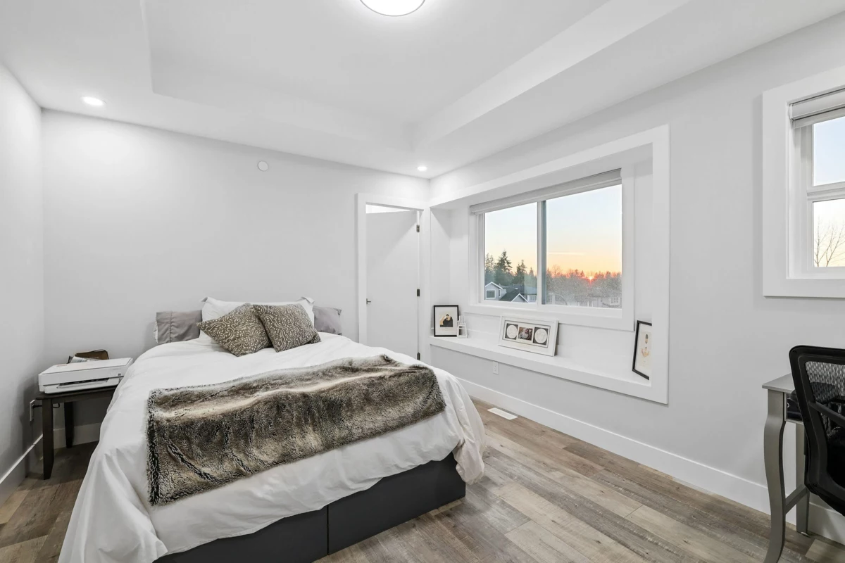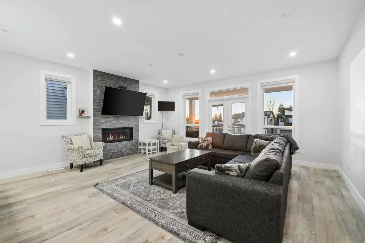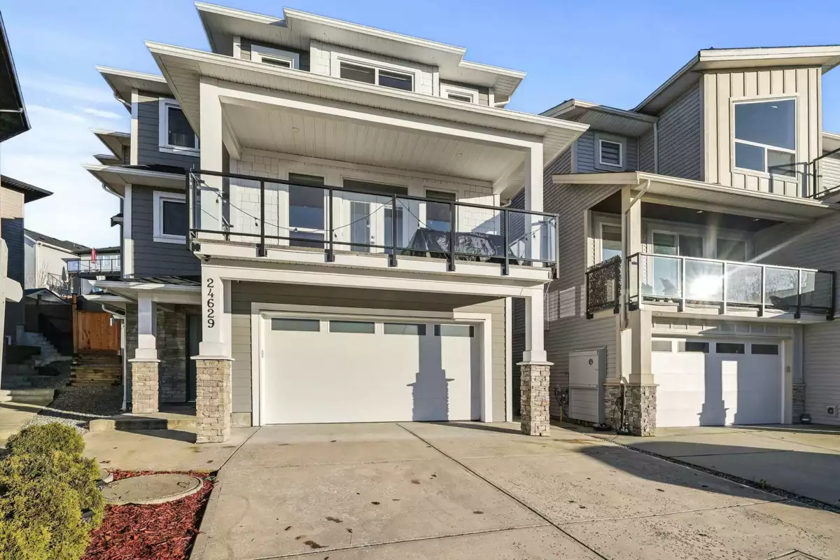 Located in the sought after Albion Elementary catchment and surrounded by scenic walking trails, this three storey home offers over 3,200 sq. ft. of flexible living space. A legal two-bedroom suite on the lower level provides an excellent option for rental income or an extended family. The main floor features a bright, open living area anchored by a chef style kitchen, with direct access to a spacious covered balcony ideal for year round use. A large bedroom on the main floor adds versatility for larger families. Upstairs, four well-sized bedrooms include two private primary suites with walk-in closets, complemented by three full bathrooms. Legal 2 bedroom suite rented for $1,862 per month.