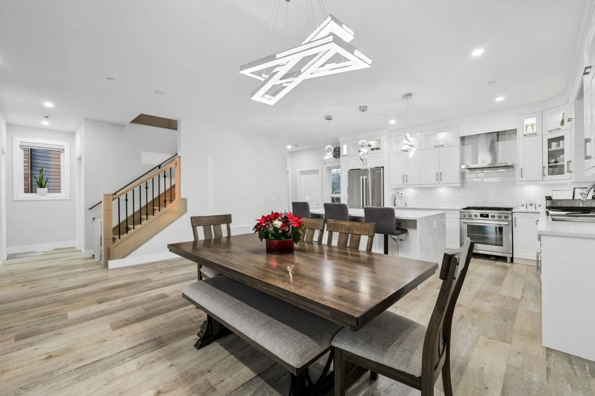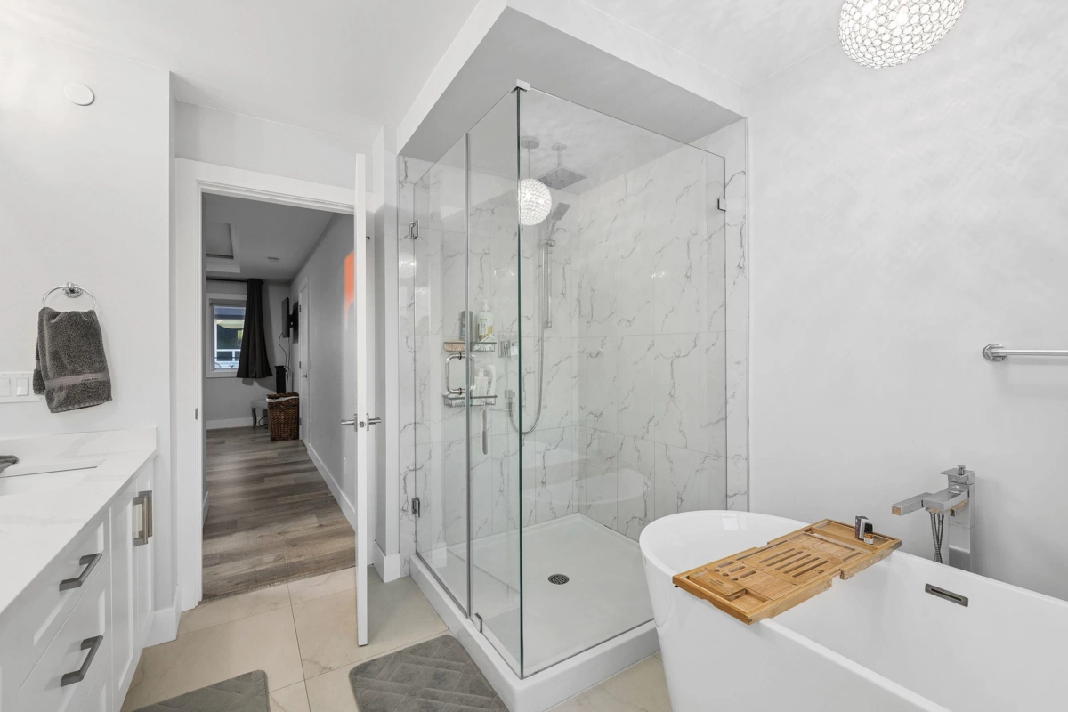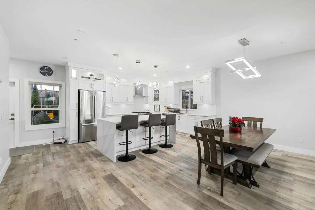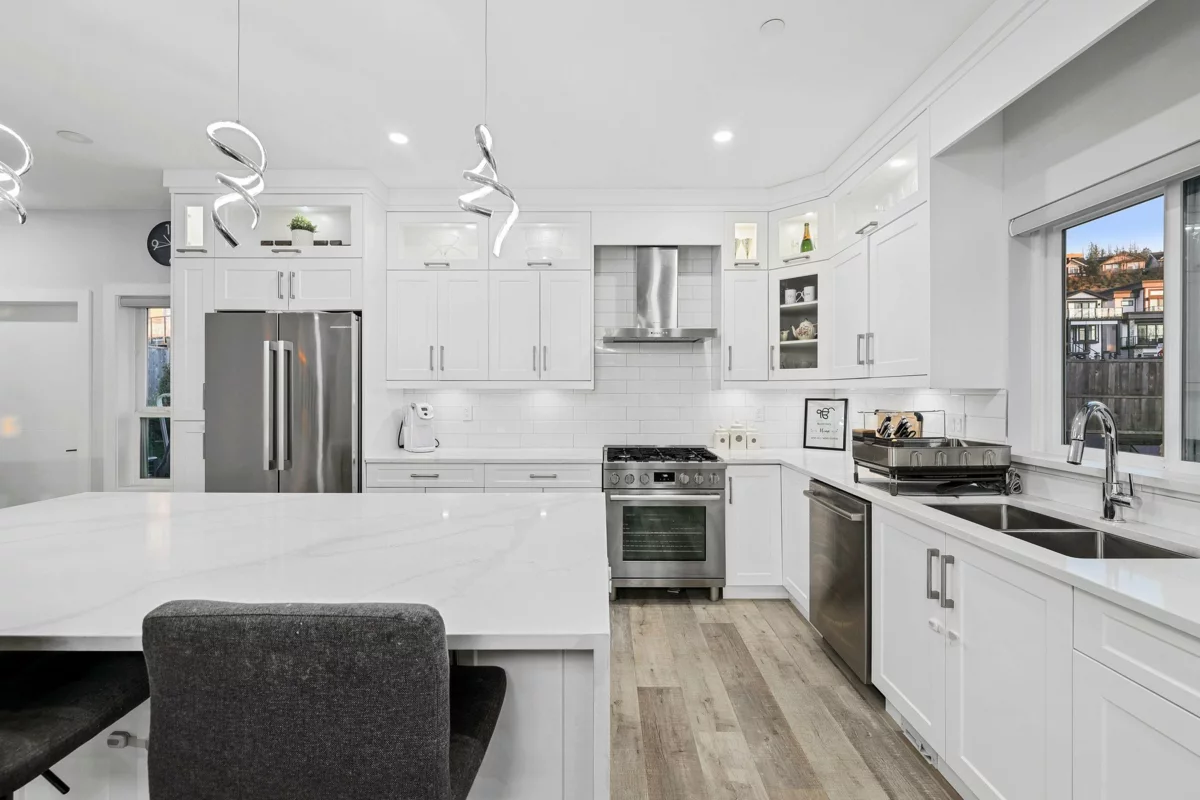 Located in the sought after Albion Elementary catchment and surrounded by scenic walking trails, this three storey home offers over 3,200 sq. ft. of flexible living space. A legal two-bedroom suite on the lower level provides an excellent option for rental income or an extended family. The main floor features a bright, open living area anchored by a chef style kitchen, with direct access to a spacious covered balcony ideal for year round use. A large bedroom on the main floor adds versatility for larger families. Upstairs, four well-sized bedrooms include two private primary suites with walk-in closets, complemented by three full bathrooms. Legal 2 bedroom suite rented for $1,862 per month.