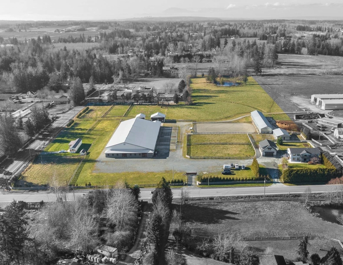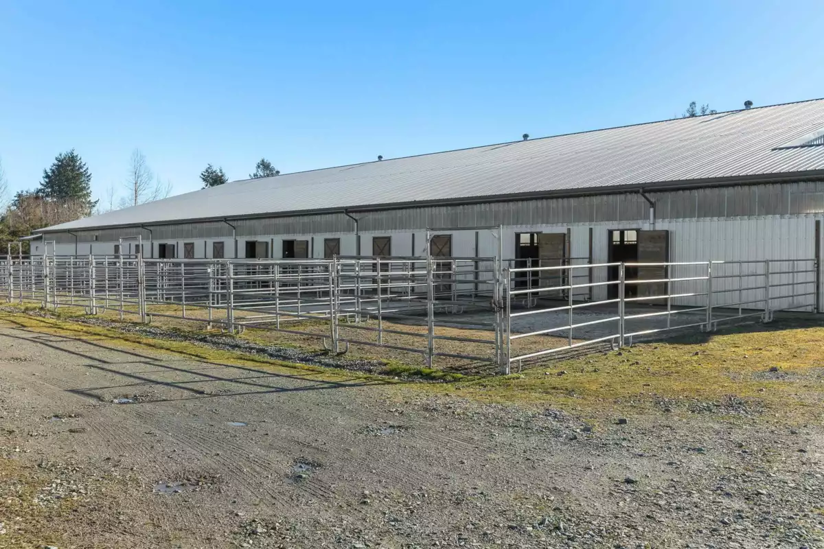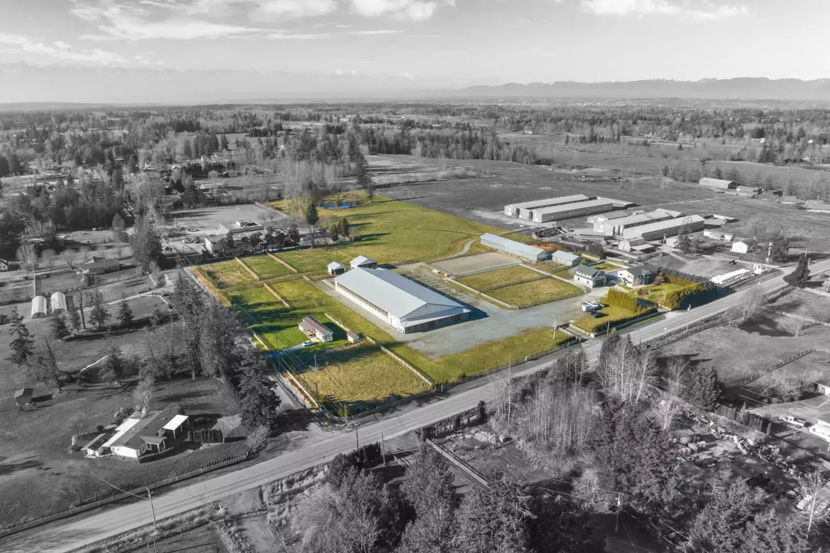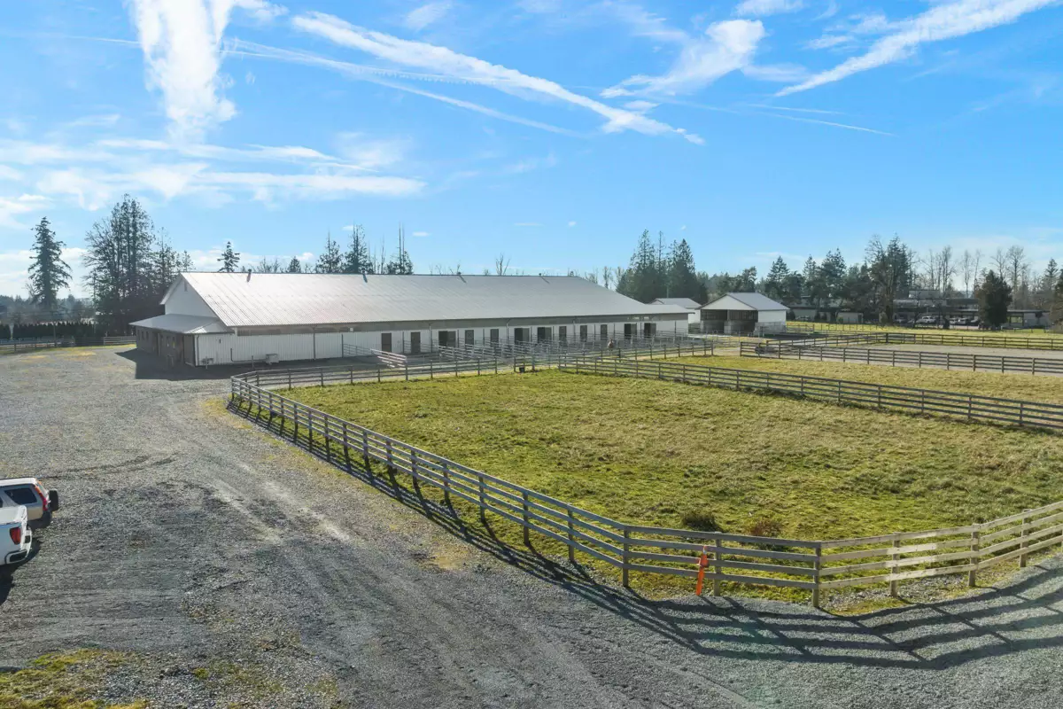 Exceptional Langley Equestrian Estate on 13.5 Acres! Frontage along 240th St. & 24th Ave, this custom-built facility features a 104’ x 232’ barn (2018) with an 80’ x 200’ indoor arena, 12 stalls (12’ x 12’), heated tack rooms (1 public, 2 private), LED lighting, wash & grooming bays, washrooms, mechanical room, custom lounge & more. Each stall has split outside access to turnout pens. The 3,600 sq. ft. updated home boasts a pool & hot tub, plus a single-wide mobile home with private driveway. A 30’ x 40’ two-storey shop awaits your ideas. Additional barns provide extra space for horses and cattle, and two bunkers provide storage for manure and sawdust. Natural gas, electricity & a high-producing well (50+ GPM) service the property. You don't want to miss this one - call today!