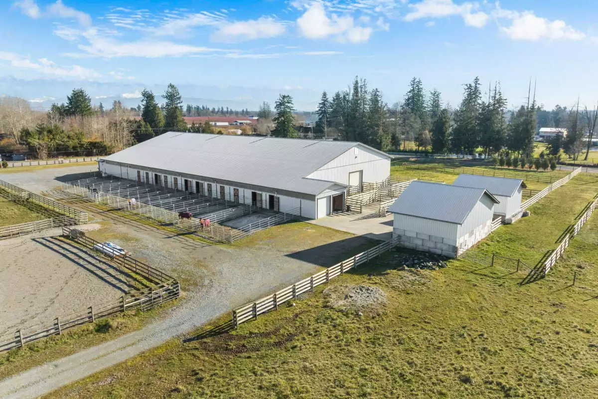 FIRST CLASS 13.5-acre MULTIFAMILY EQUESTRIAN ESTATE. This 2018 custom-built facility features a 104’ x 232’ BARN with an impressive 80’ x 200’ INDOOR ARENA, 12 spacious 12’ x 12’ stalls with attached paddocks, heated public and private tack rooms, wash and grooming bays, washrooms, mechanical room, LED lighting, custom lounge and more, PLUS a separate 6 stall barn, OUTDOOR ARENA and fenced pasture. The updated 3,600 sq. ft. home offers comfortable living with a pool & hot tub, plus a single-wide mobile home with its own private driveway. A new 30’ x 40’ two-storey shop offers endless potential. Additional barns accommodate horses or cattle, with two bunkers for manure and sawdust storage. Serviced by natural gas, electricity and a high-producing well over 50 GPM.