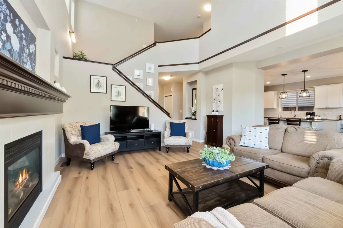 Your search for the perfect blend of luxury and income potential ends here! This executive 3-storey home, nestled in an AMAZING NEIGHBOURHOOD, loaded with DELUXE, high-end finishings. Step into the dramatic great room featuring SOARING 18' ceilings & elegant laminate floors. The gourmet kitchen is a chef's dream, bright white cabinets, stainless appliances, and gorgeous countertops. An covered entertainment-sized deck steps right off the kitchen, perfect for outdoor living. Upstairs, the expansive primary suite is a true sanctuary complete with a walk-in closet and a SPA-LIKE 5-piece ensuite. Versatile media room (easy to make another bedroomroom) and 2 more generous bedrooms complete the level. This property includes a fully finished LEGAL 2 bed suite. Lots of light and seperate laundry!