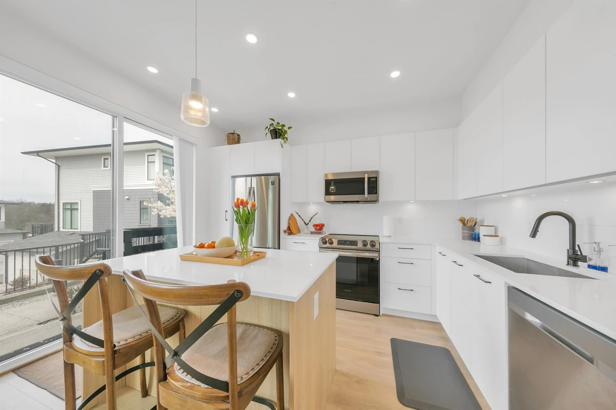 Discover the pinnacle of Anthem's design with Wood and Water in Surrey’s Fleetwood neighbourhood! Experience close proximity to top schools, nature parks, the upcoming Skytrain station on Fraser Highway, and next-door golf courses. This exclusive corner unit boasts duplex-style living, panoramic green belt views, and modern finishes. The open-concept living space on the main floor is elevated by 9 feet ceilings, stainless steel appliances, contemporary finishes and a large side-by-side garage. Upstairs, two master bedrooms with ensuites and walk-in closets await, alongside two additional bedrooms and a convenient laundry room. Unwind at the Clubhouse, featuring a fitness center, rooftop BBQ, entertainment lounges and children's play area. Don't miss out - schedule your viewing today!