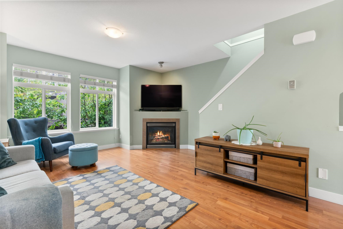 NUOVO in Clayton: 2 bed, 2 bath town home with all the luxuries. Stainless steel appliances, washer & dryer, laminate flooring on main, granite counters in kitchen and bathrooms, corner gas fire place, 2 inch window blinds, large covered deck on south side over looking fenced yard. Across the street from Katzie Park and close to shopping and schools. Pets allowed!