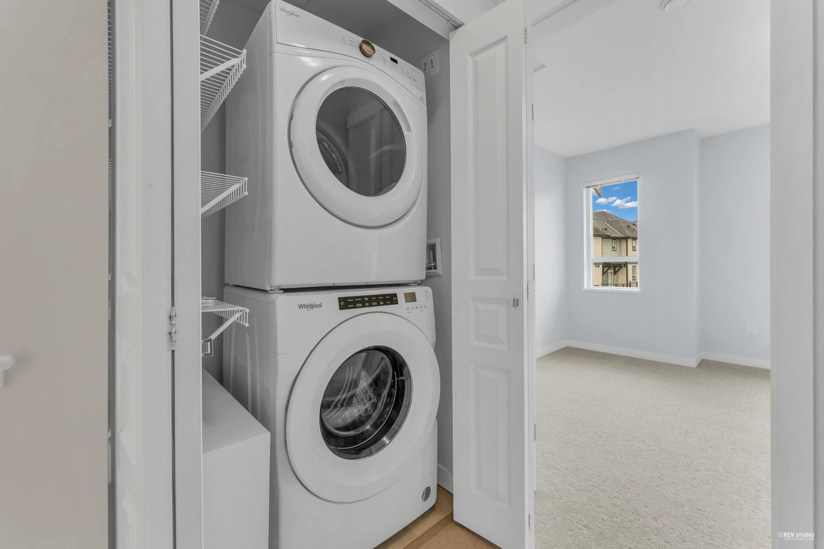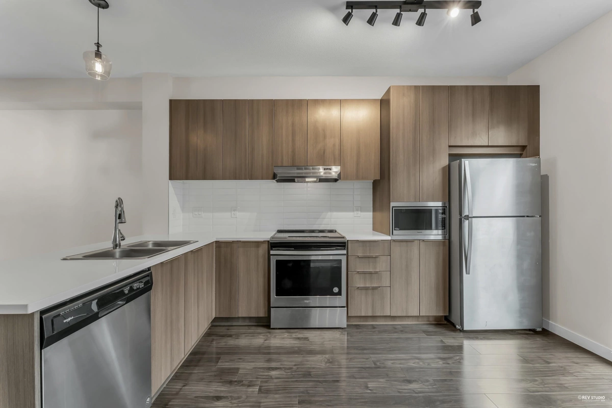 Welcome to Bristol Heights a master planned community by Polygon! Like new, this beautifully maintained 2 Bed + 3 Bath home is FULL of Upgrades & Features: BRIGHT OPEN CONCEPT main living, 9’ Ceilings, Fresh New Paint, Brand New Carpets, Kitchen with sleek stone counters, full-height tile backsplash, Custom Designed Cabinetry, stainless steel appliances incl. built-in microwave. Upstairs, 2 Very Spacious Bedrooms include a Primary features spa like ensuite with double vanity. The tandem garage fits two large vehicles plus lots of storage. Fenced Backyard & Large Balcony. Enjoy a 9000 sqft CLUBHOUSE with in-ground outdoor pool & hot tub, firepit & BBQ area, exercise room, Theatre room, social room, pool table, dog wash area & kids playground. Close to Hwy 1, shopping, schools & transit!
