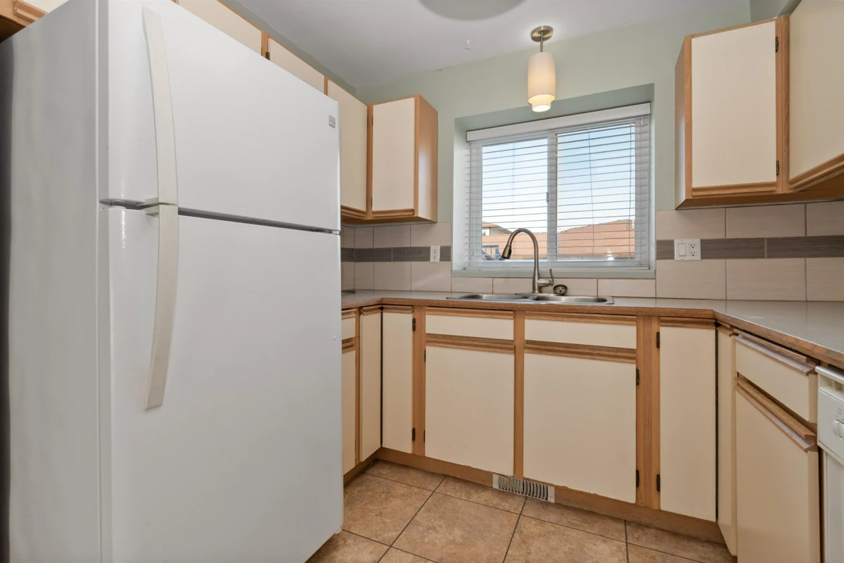 This affordable ground-level townhouse is perfect for a starter or retirement. Family-friendly community features a clubhouse, guest suite, tennis court, playground, bike storage room, ample parking and much more! The south-facing living room brings lots of natural light in. Fenced yard, covered patio, storage shed, and a garden area for family entertaining. Centrally located, walking distance to the malls, restaurants and shopping. Quick access to the highway. Low Strata fee, pets allowed. Come and check it out.