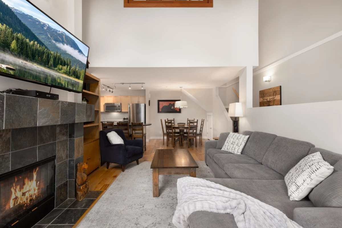 Mountain living meets modern luxury in Whistler’s coveted Blackcomb Benchlands with this beautiful 3 level, 3 bedroom townhome in The Villas at Snowberry. Steps from Lost Lake Park, Blackcomb Mountain, and the Fairmont Chateau golf course, this updated home offers comfort and convenience. The open floor plan features a welcoming living room with a wood burning fireplace and vaulted ceilings, perfect for relaxing after a day of adventure. With one bedroom on the main level and two above, there is plenty of space for family and guests. A private balcony with mountain views and access to the Valley Trail system complete the package. Short term rentals are permitted, adding excellent income potential when not in use.