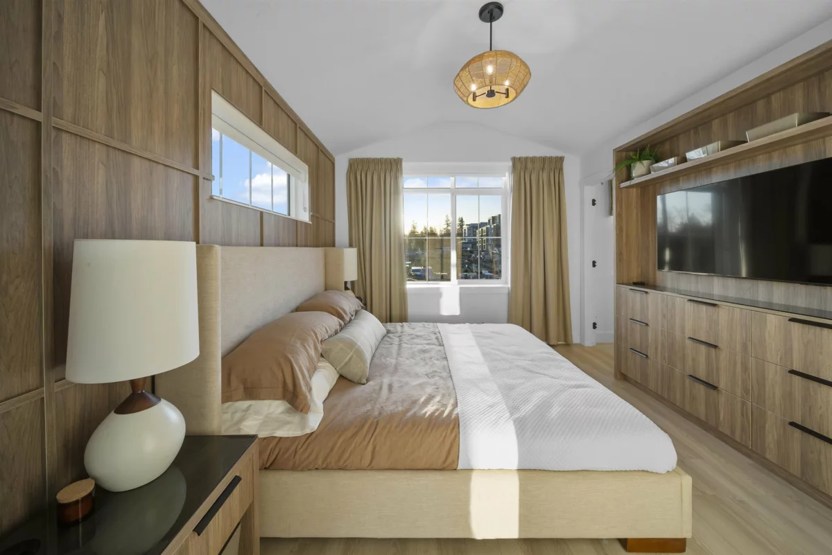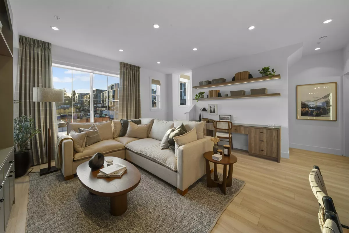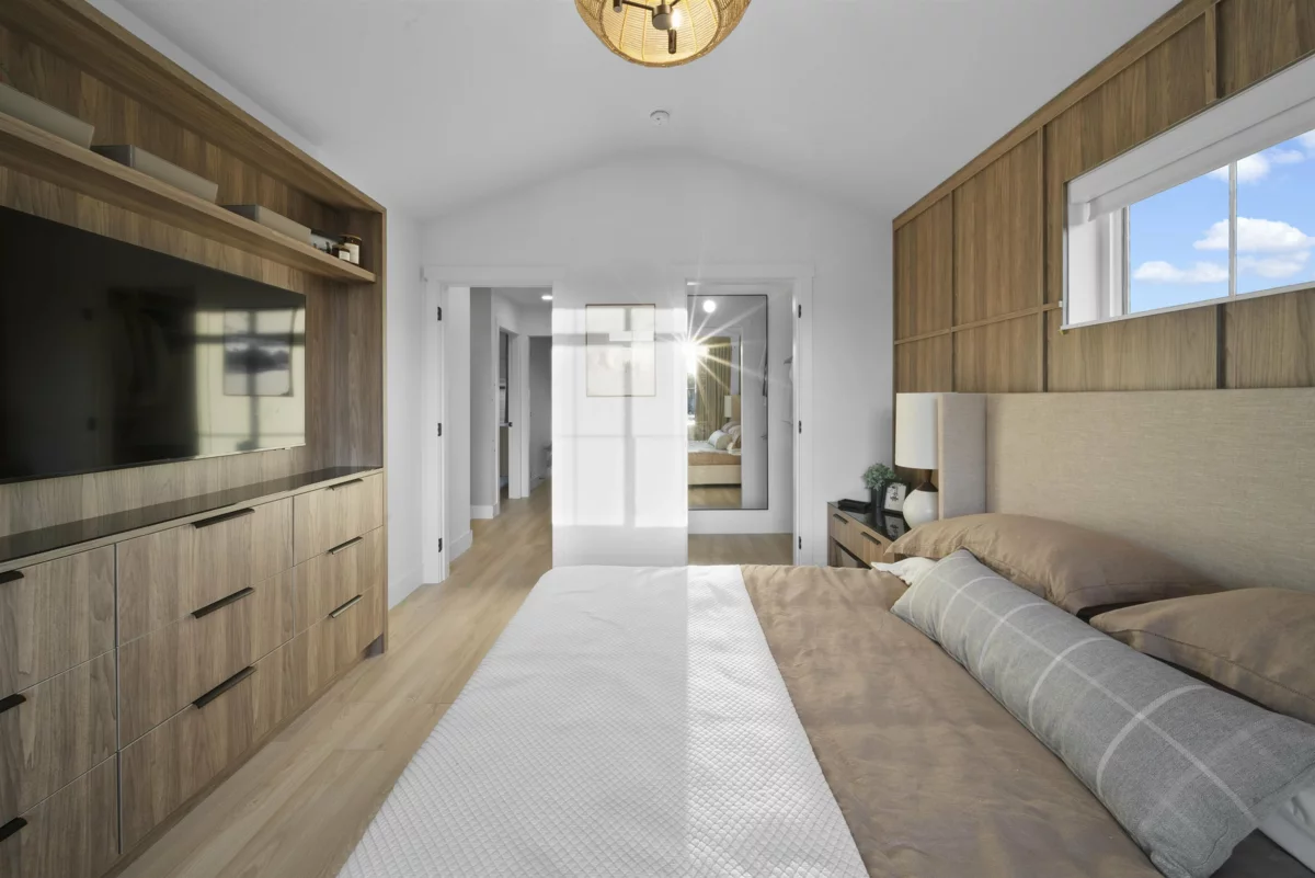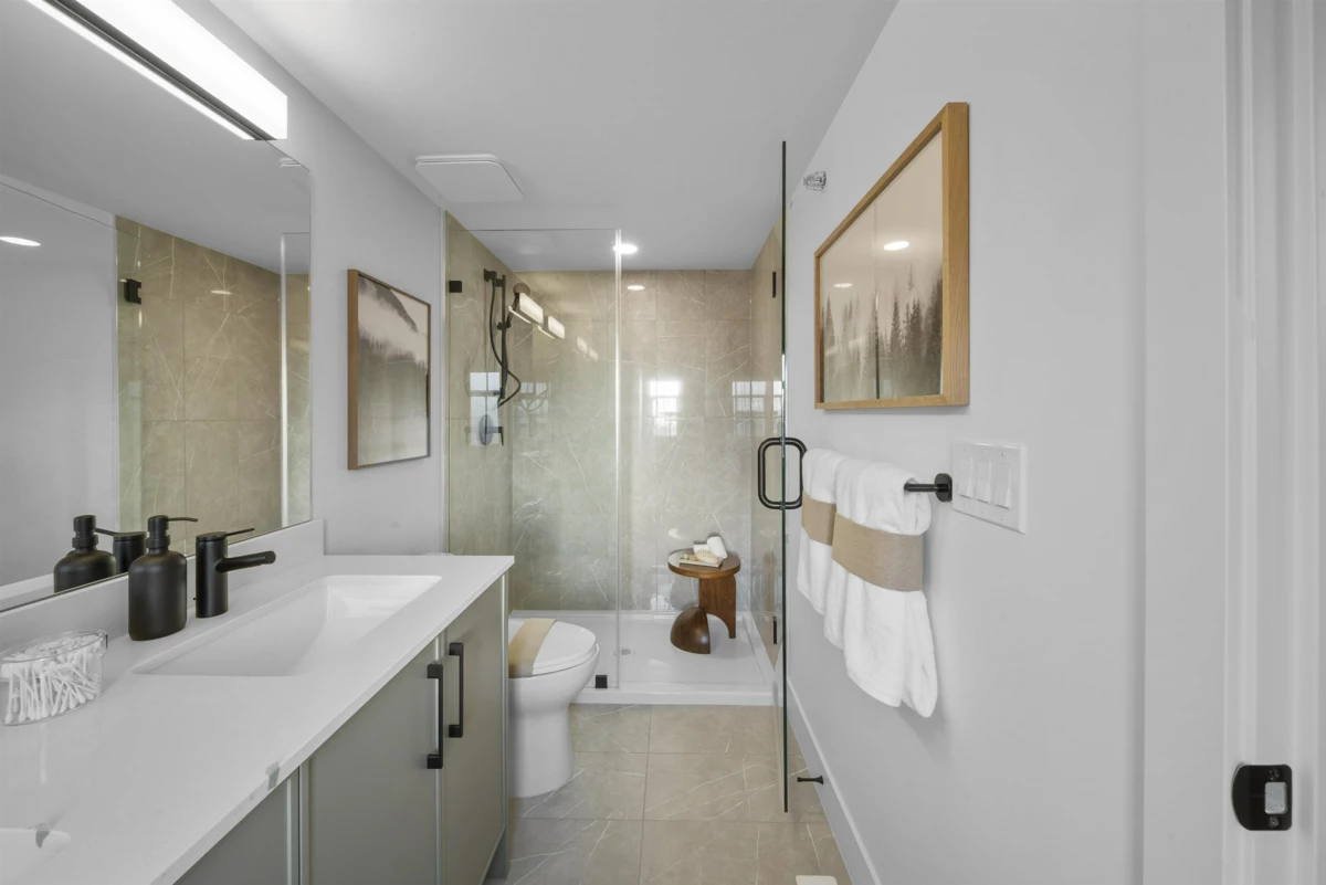 MOVE-IN READY at LATIMER WALK by award-winning Zenterra Developments. This bright, modern 3-bedroom home features a stylish kitchen with a full KitchenAid appliance package, ideal for everyday living and entertaining. Enjoy laminate flooring throughout, air conditioning, forced-air gas heating, and hot water on demand for year-round comfort. This south/east/north-facing corner home backs onto a 5m greenbelt and includes a spacious fenced backyard. Additional features include a BBQ gas hookup, garburator, and built-in wood closet organizers. Only 5 homes remain. Show home open Saturday–Thursday, 12–5 PM.