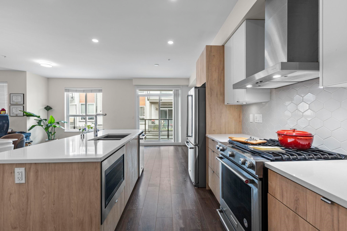 Tired of cramped condos and dark spaces? Look no further! Step into this bright and modern corner 2 Bedroom + Den/Flex & 2 Bathroom condo in Willoughby Heights that has an ideal floor plan! Featuring 11’ vaulted ceilings, open-concept living, and oversized windows, this home is perfect for young professionals, families, or those looking to downsize. The kitchen offers quartz countertops, stainless steel appliances, & ample storage. Bedrooms on opposite ends of the suite providing privacy, and the covered balcony is ideal for relaxing and for morning coffees. Includes 2 side-by-side underground parking stalls and a large storage locker. Steps to Willoughby Town Centre, Carvolth Exchange, Hwy 1, all schools, parks, and shopping. Building has a party room and elevator. Pet & rental friendly!