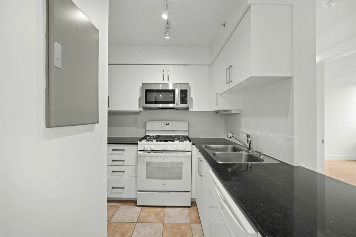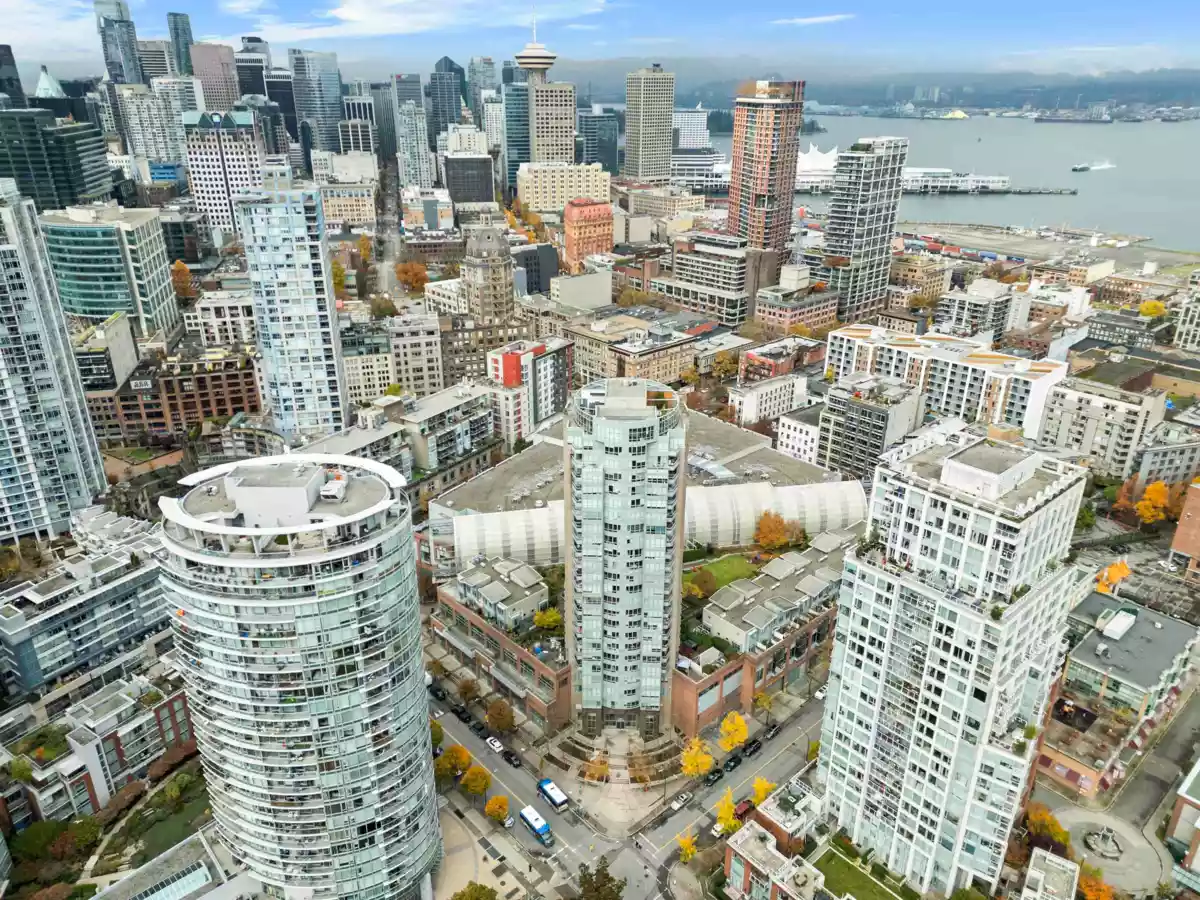 Recently renovated and ideally situated near the top floor, this elegant suite offers stunning Southwest-facing water views in Downtown. Updates include new flooring, modern blinds, and fresh paint throughout. The sleek kitchen features brand new, high-quality appliances—oven, microwave, fridge/freezer, dishwasher—plus new cabinetry and quartz countertops. The bathroom showcases a new vanity, bathtub, and tiles. Additional highlights include brand new in-suite laundry, a gas stove, central A/C, secure parking, and a storage locker. Conveniently located near Stadium Station, Rogers Arena, shops, restaurants, and fitness options. Residents enjoy premium amenities including a shared workspace, pool, jacuzzi, sauna, and gym. Schedule your private viewing today!