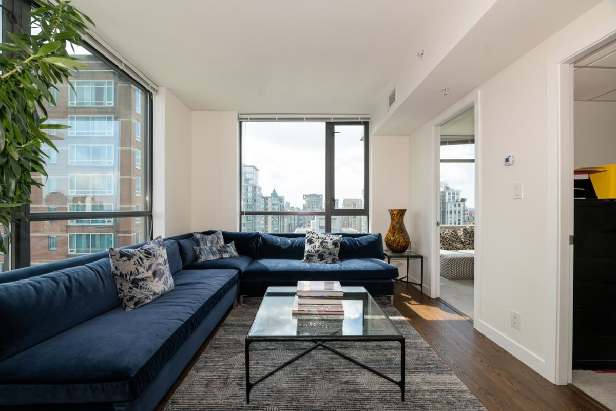 Average size of families in the area adjacent to home for sale 2501 788 Richards Street is 2.2. This is Low number in comparison to the whole region. Percent of families with children near by the Real Estate Listing - MLS® R2874701 is 25.3% and it is Low. % of Married or living common law is around 42.4% and it is Low.