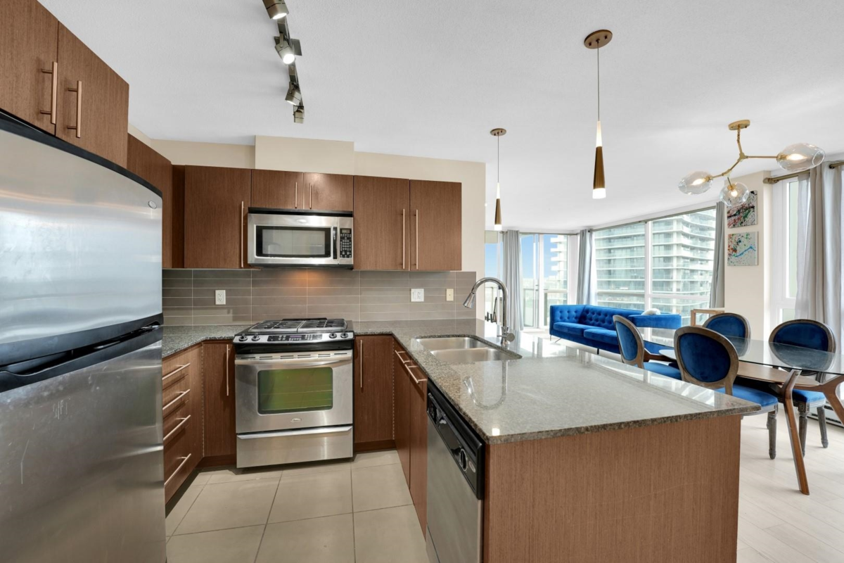 Best buy in Brentwood, priced below Assessment value!!! Built by Top developer McAllister!!! Stunning 2bed 2bath Condo with breathtaking views! This spacious and beautifully maintained condo is located in a prestigious 2008 built concrete high rise "The Fitzgerald" near Brentwood Mall, Skytrain, Costco and more. Short 15 minute drive to downtown. This home offers a perfect blend of luxury, convenience and comfort. Comes with 2 parking spots and 1 full size storage locker. Building has a gym, hot tub, games room and rec room. Perfect place to live or to invest. 1 dog and 1 cat ok
