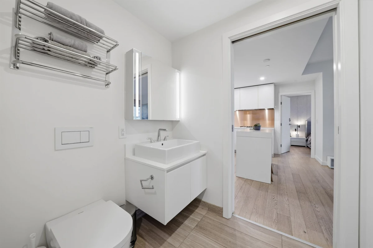 Vancouver House - live in an iconic piece of the Vancouver skyline. This west-facing, ocean view home features incredible views of English Bay. Enjoy your open concept kitchen with eye-catching copper backsplash & sleek built-in Miele appliances. Rest easy in your primary suite, with a spacious ensuite that gives you the best of both worlds - a separate spacious shower & a soaker tub. Floor to ceiling windows throughout highlight the beauty of Vancouver living - the nature & the city in harmony as your view. Amenities include an indoor/outdoor pool, hot tub, 10,000 sq ft House Concepts (fitness centre), BMW Car Share, & 24 hour concierge . Located walking distance to all the shopping you'll want & the beauty of the seawall. Your A/C'd home comes with 1 parking, 1 storage & 1 bike locker.