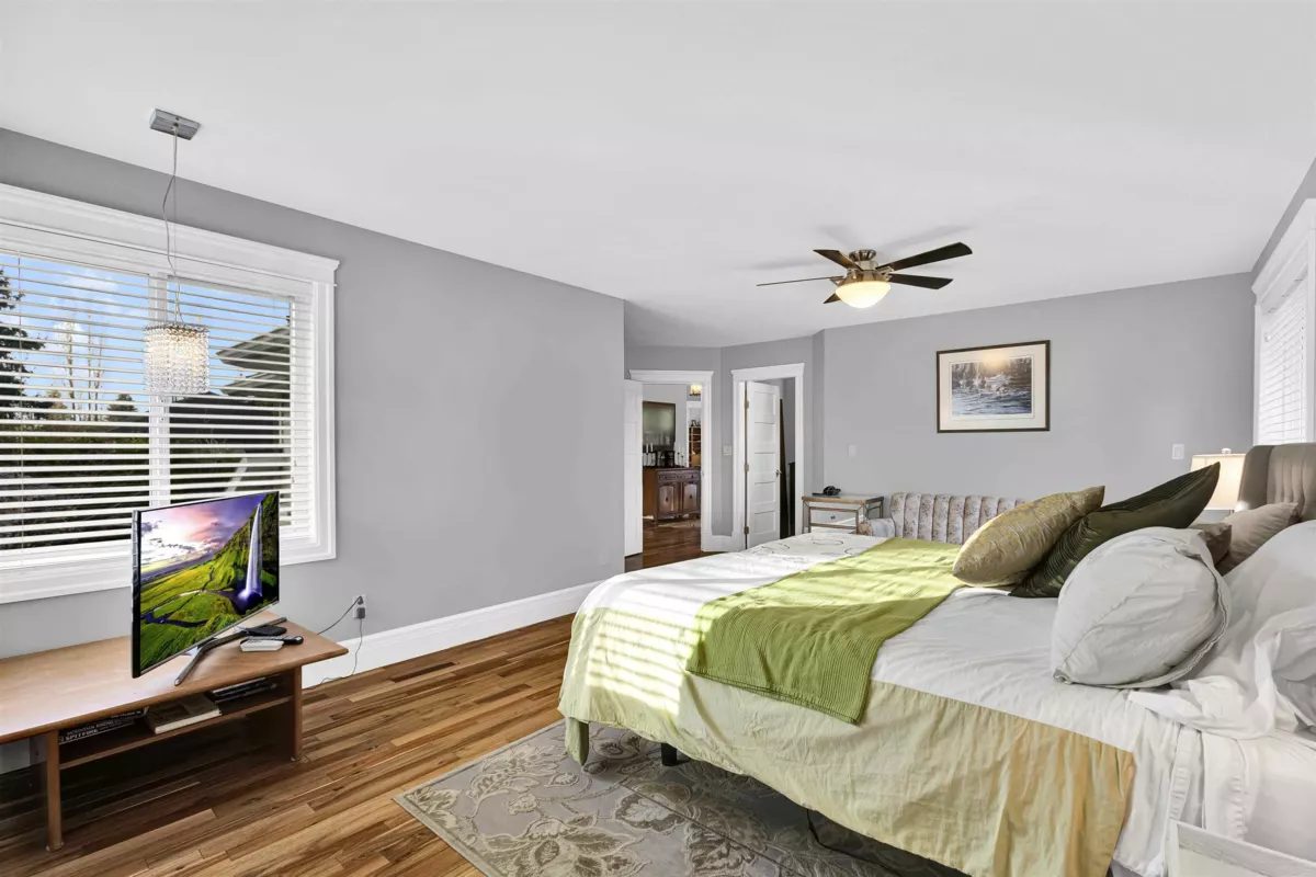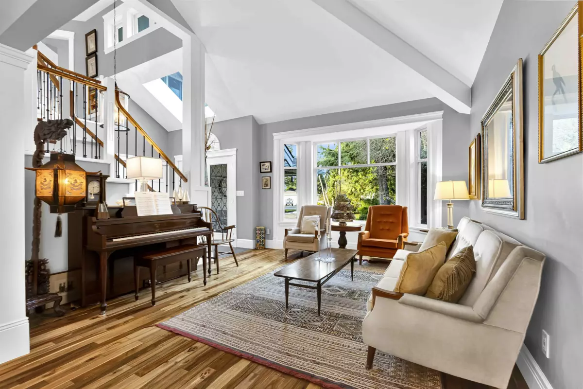 Rare opportunity - PRIVATE GATED ACREAGE (NOT IN ALR) on CITY WATER in Langley’s desirable SALMOM RIVER! Craftsmanship & comfort come together to create an exceptional home. BDRM+FULL BATH on MAIN is perfect for ELDERLY. MAIN w/vaulted entrance & living rm, dining w/coffered ceilings, hardwood & chef-inspired kitchen w/GRANITE counters, S/S appliances, eating area & great room w/ BAR. UPSTAIRS boasts 3 bdrms, primary w/ WIC, 5 pce ENSUITE. Exterior w/perennial gardens, fruit trees, brick-edged landscaping, 900 sq ft DECK w/ BUILT-IN TV&SPEAKERS &electric awnings. INSULATED 30 x 24 WORKSHOP w/ a 4 post lift, EV charging, generator, RV parking. NEW HOT WATER tank (2024). All permits, building certs + plans avail. 5 MIN to DW Poppy Sec, North Otter Elem, Krause Berry, Steele Park.