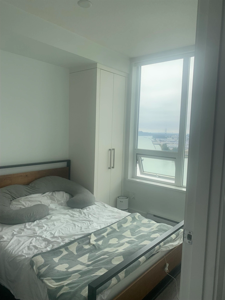 RiverSky 2 by BOSA, located in Central Downtown New Westminster. This 1 bedroom, 1 bathroom unit on the 25th floor features panoramic South West views of the Fraser River and beyond. Open-concept modern kitchen features a gas stove, soft-close cabinetry, composite stone countertops, an integrated refrigerator, integrated dishwasher. The building offers 24 hour concierge service. Amenities include a fully equipped gym, a rooftop terrace and green space with water views, lounge seating, and BBQs. Pet-friendly. High Walk Score. Conveniently close to Transit, The Quay, shops, restaurants, cafes all on your doorstep right on the Fraser Riverway. Parking 168 and Locker 22. Court date January 8, 2026.