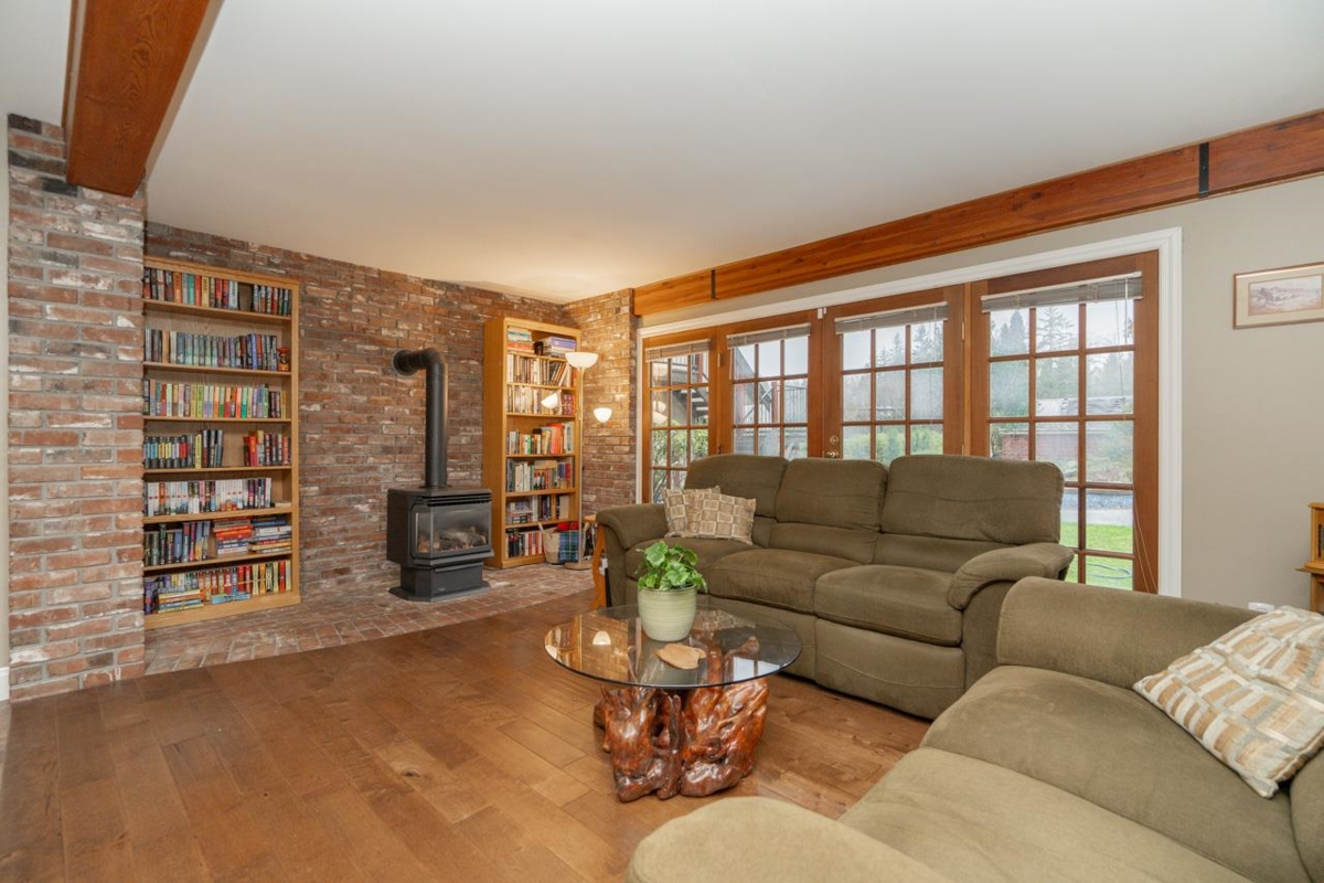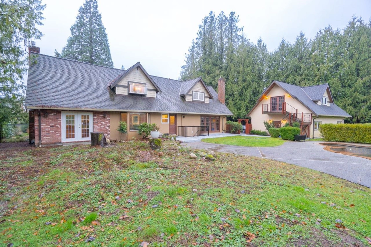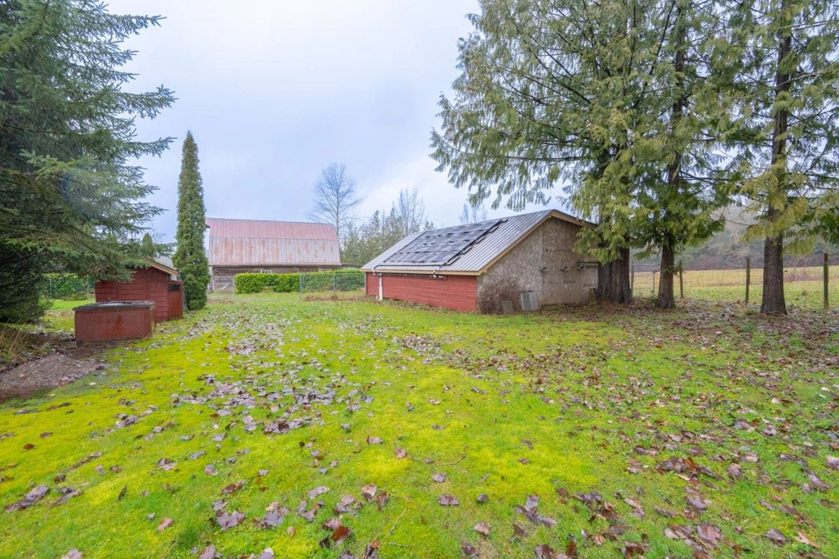 Rare opportunity to own a flat and usable 4.73 acre rectangular property with no creeks, on a quiet no-thru road. Well maintained 3,323 sf 2-storey home with basement, workshop and barn offers privacy and a peaceful country setting. Upper level features 4 beds and 2 baths. Main floor includes spacious living and dining areas, family room, kitchen with nook, laundry and powder room. Basement offers rec room, flex and utility space. Enjoy a 35x17 heated pool with solar panels. Updates include Navien hot water heating, gutters, windows, renovated baths, quality appliances, hardwood floors and granite counters. Bonus 887 sf shop/garage w/50amp service, barn 20amp, and garden shed 20amp. Plus a 620 sf unfinished coach house ready for your ideas. Minutes to Thunderbird, Hwy 1 and Fort Langley.