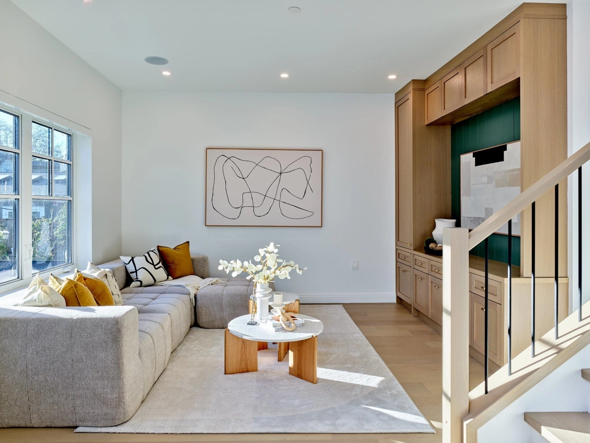 Welcome to The Gables on Grant, an architecturally distinctive collection of three residences, anchored by the Primary Home with charming gabled character. Offering 2,101 sq ft of two-level living, this family-friendly residence features 3 bedrooms and 2 bathrooms, designed for comfort and everyday living.The bright, modern kitchen features full-height cabinetry, built-in wine storage, and a generous island with seating, flowing seamlessly into the dining and living areas. Large windows flood the home with natural light, creating a warm, inviting atmosphere. A main floor office easily functions as a fourth bedroom, while the oversized, fully equipped laundry room adds everyday convenience. A functional layout and EV-ready parking complete this timeless home built for modern family living.