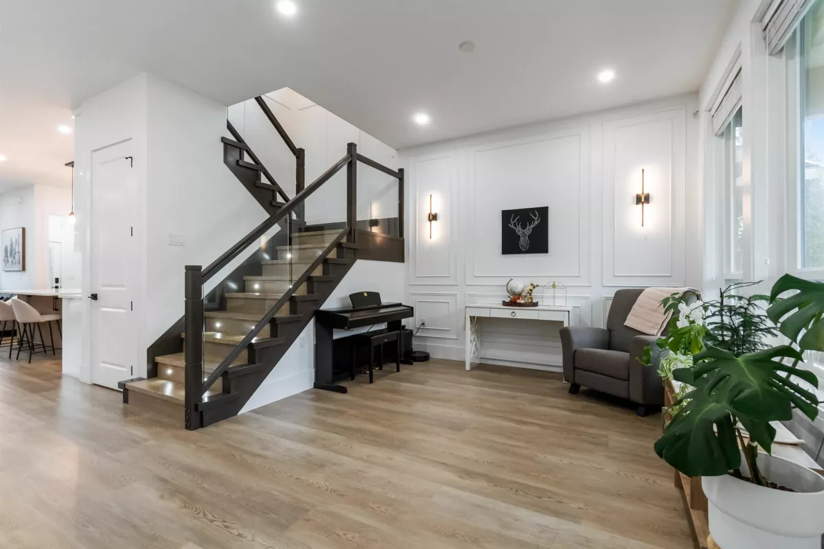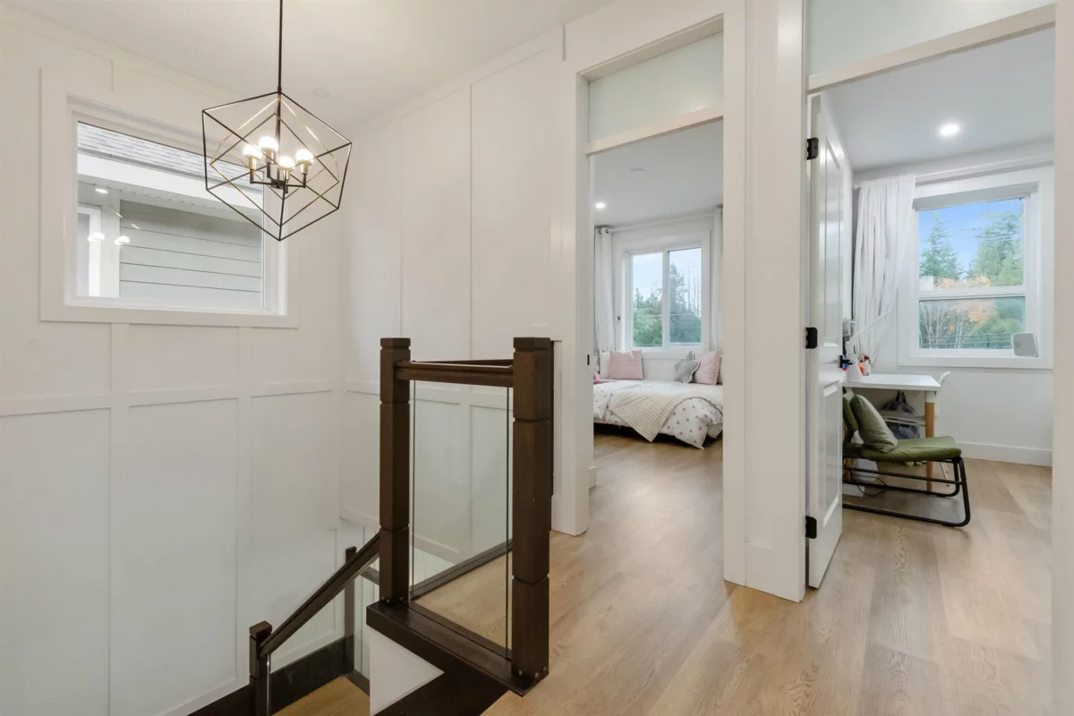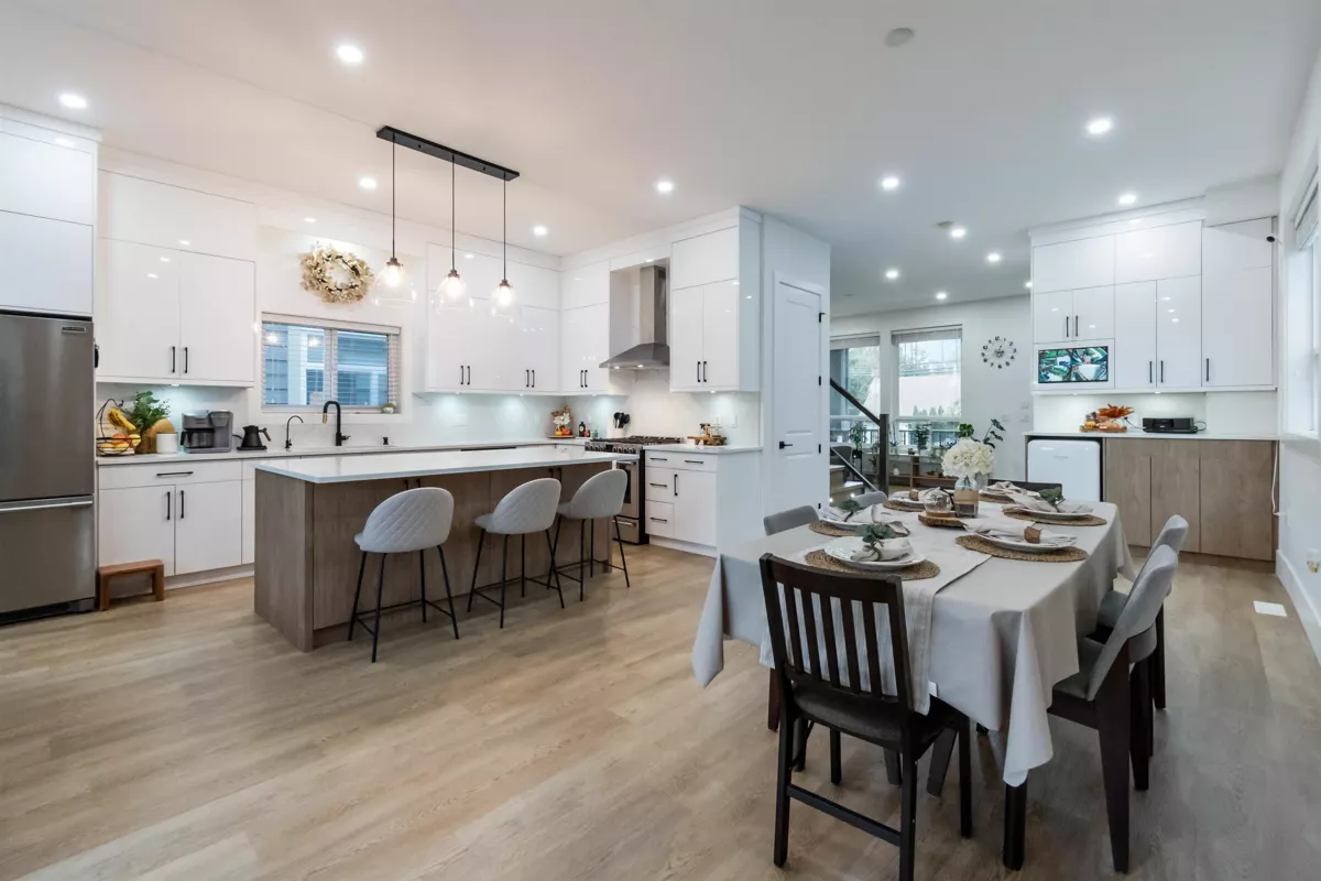Welcome to this modern, light-filled home featuring 10' ceilings, expansive windows, AC and a chef’s kitchen with an oversized island, and stainless steel appliances. The family room opens to a covered deck and a low-maintenance backyard upgraded with premium artificial turf. Upstairs offers 4 bedrooms, with the former lounge area converted into an additional bedroom. The basement includes an extra media room and a dedicated space where the seller currently operates a DAYCARE—offering excellent flexibility. Seller upgrades include a new awning over the separate entrance, asphalt-paved outdoor parking, and enhanced 18" insulation in the attic and 6" in the garage. Minutes to Morgan Crossing, top schools, transit, and the Grandview Heights Aquatic Centre. Open House : Nov 29 & 30 (2-4pm)