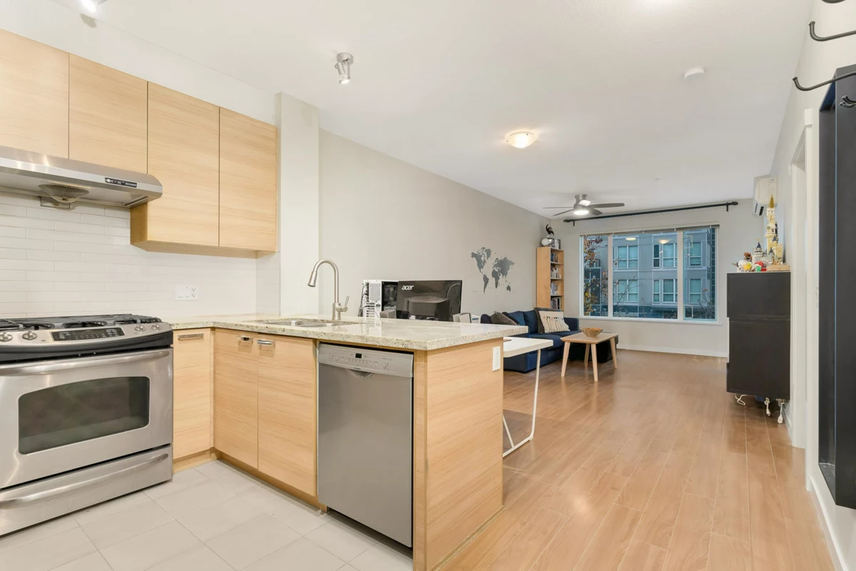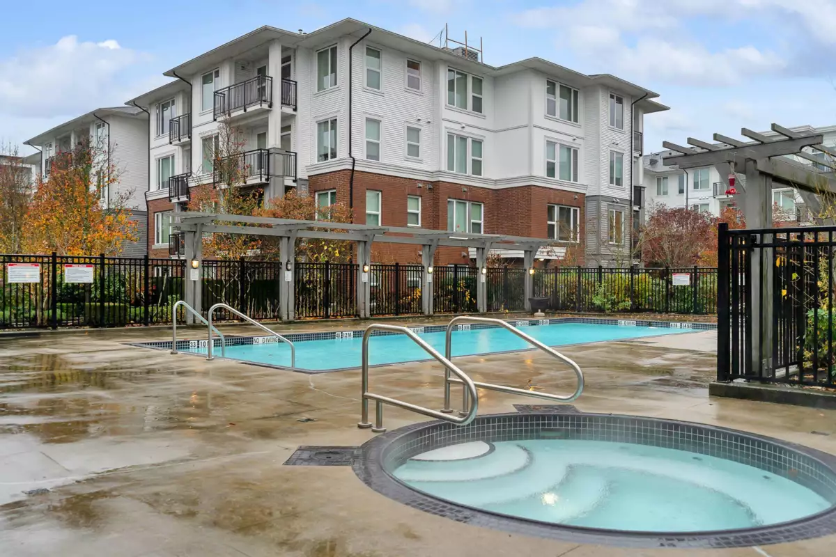 Welcome to "Mayfair Place" by Polygon! This stunning North-facing condo offers breathtaking mountain views and a thoughtfully designed 700+ sqft layout. High 9' ceilings, a contemporary kitchen, and a private balcony create a bright and welcoming atmosphere. The master bedroom boasts a tranquil ensuite, while a geothermal cooling system ensures optimal comfort throughout the seasons. Enjoy world-class amenities, including a fitness studio, pool table, party room, media room, table tennis, outdoor swimming pool, hot tub, landscaped courtyard, and more. Conveniently located near Tomsett Elementary, Alexandra Park, and a vibrant shopping center with Walmart, banks, and restaurants. This home is also just 10 minutes from YVR Airport & Vancouver, with easy access to Hwy 99 & 91.