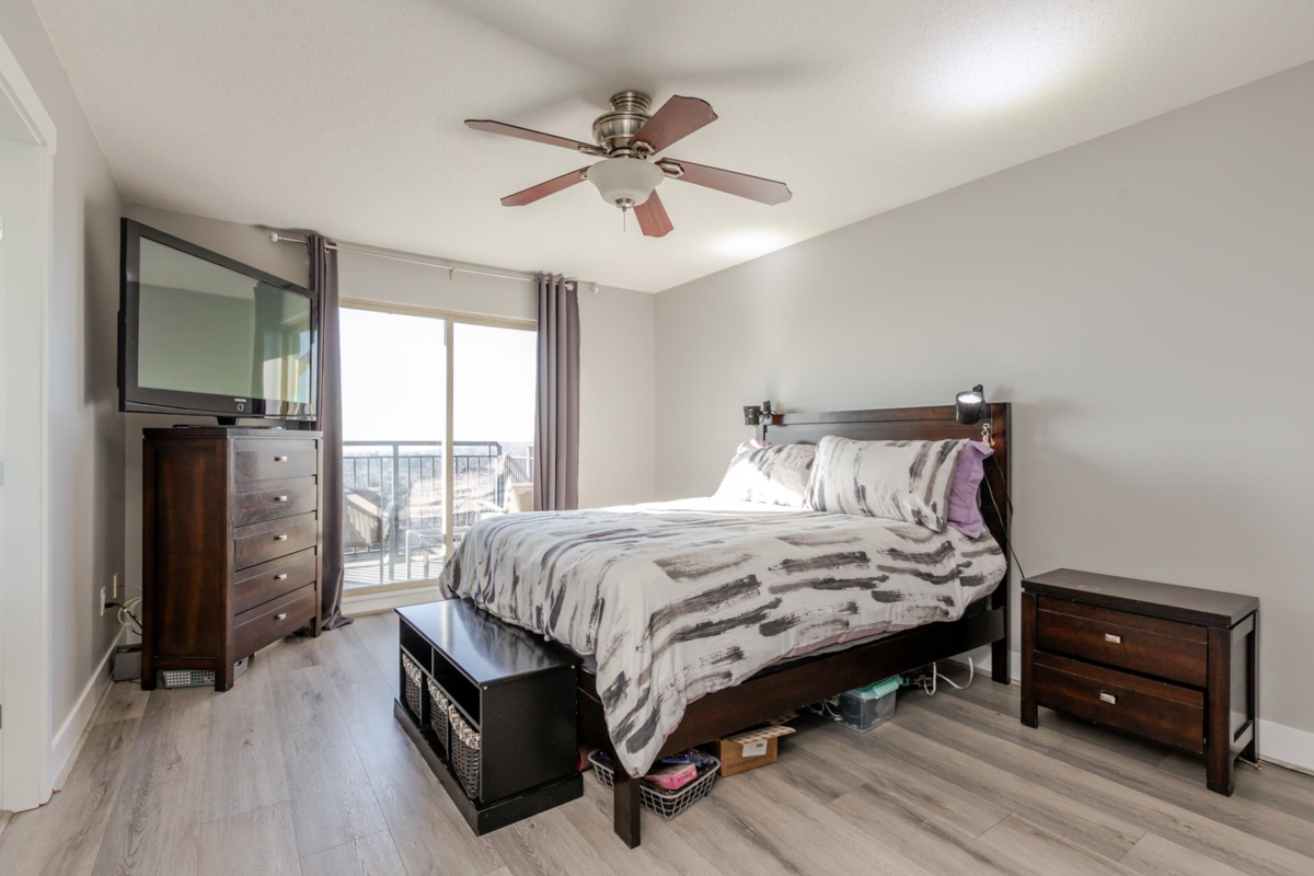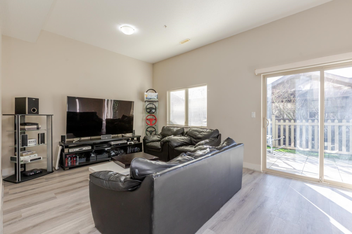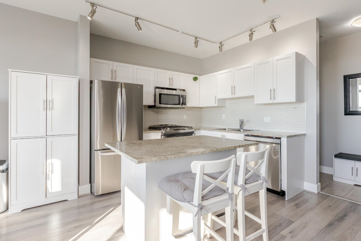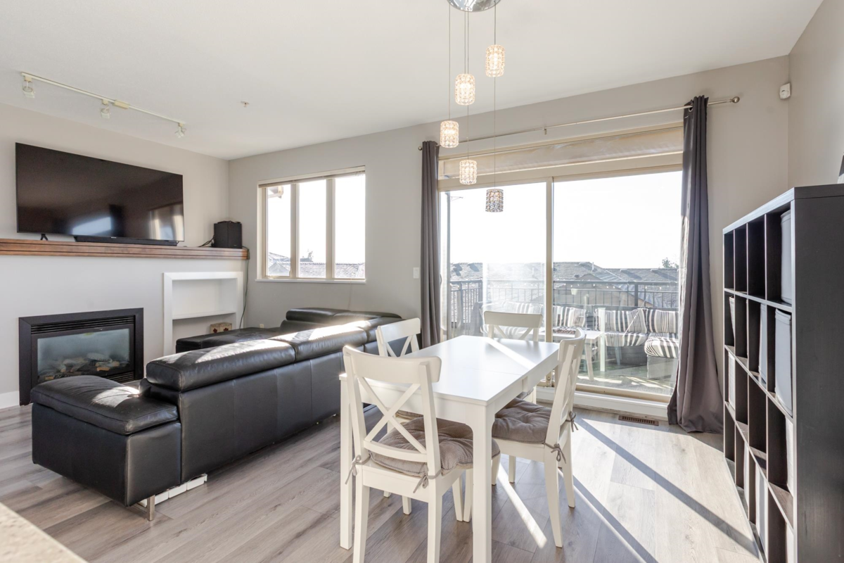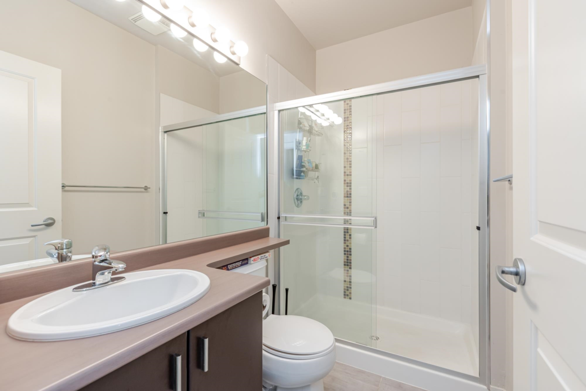 Welcome to Sunpointe! This nearly 1,900 sq. ft. END UNIT townhouse truly checks all the boxes. The main floor features a gorgeous kitchen with white shaker cabinetry, granite countertops, & stainless steel appliances, complemented by modern vinyl flooring + a convenient powder room and patio off the dining room. Upstairs offers a spacious primary bedroom with a five-piece ensuite, a full bathroom, and two additional well-sized bedrooms. The basement boasts a large media room (could be a 4th bedroom), another full bath, laundry room, storage and a covered patio. Stunning panoramic views from the main floor and primary bedroom finish this perfect place to call home. BONUS: New vinyl flooring and paint throughout! Close to schools, shops, and transit, this home is move-in ready!