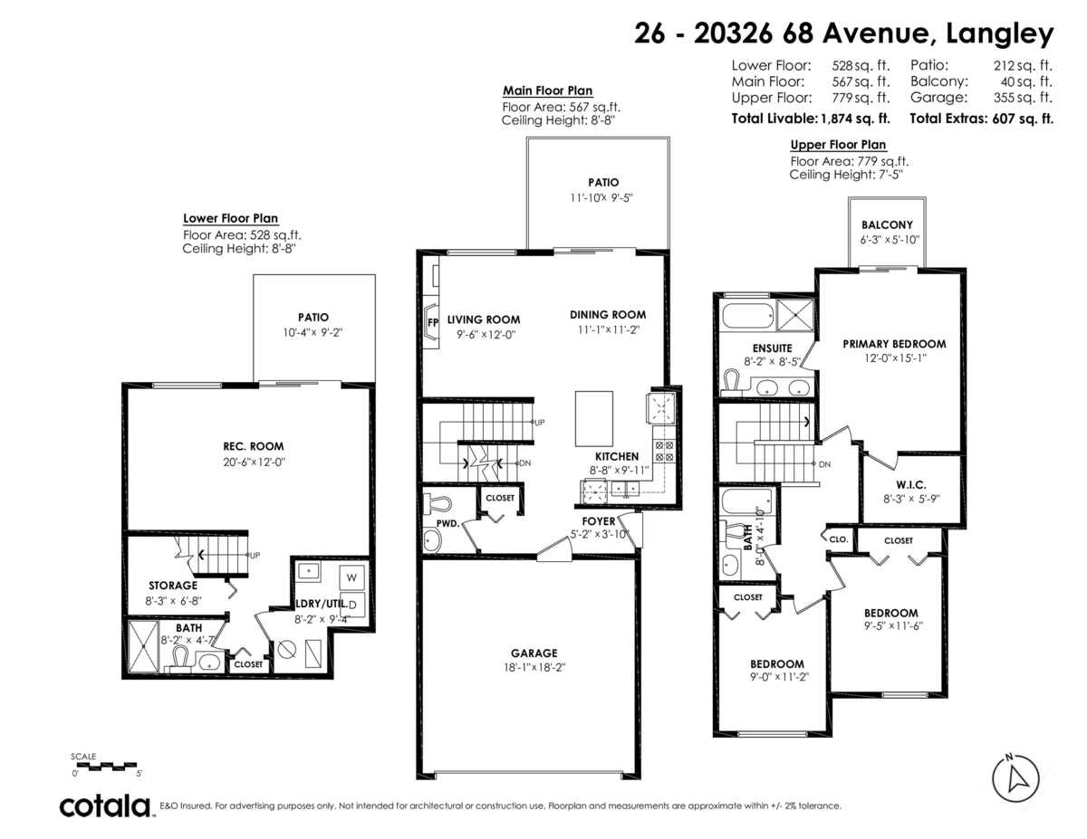 | Above Level | Primary Bedroom | 12'0 x 12'0 ft |