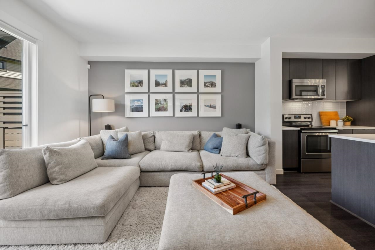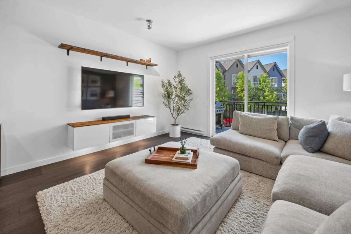 Welcome to Fremont Blue! This charming 3-bedroom, 3-full-bathroom townhome offers 1,440 sqft of living space, along with an attached one-cargarage (+ driveway parking spot). The home features 9-foot ceilings, extra-high windows, quartz countertops, and stainless steel appliances. The third bedroom is located on the lower level, making it the perfect home office. Enjoy resort-style amenities at the River Club - full gym/fitness room,party/meeting rooms, an outdoor pool, BBQ area, playground and community garden plots. Just steps to the PoCo Traboulay Trail - walk/bike alongthe scenic Pitt River. Fremont Village Centre offers shopping and dining just across the street. Commuting is easy with nearby access to Mary HillBypass and Lougheed Highway.