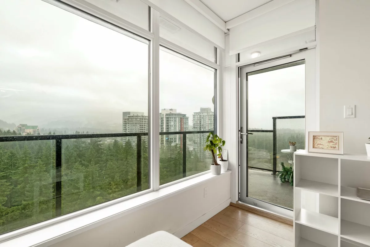 In Coquitlam's most prime location. This 9 year old 848 SF 2 bed + 2 full bath home offers convenience & privacy. The open layout features floor-to-ceiling windows with UNOBSTRUCTED VIEWS of the North Mountains, Glen Park & trees, with no units looking in. Bedrooms are separated on opposite sides for comfort. The modern kitchen boasts S/S appliances, quartz counters, gas cooktop & ample cabinetry. Upgrades incl: Nuheat floors in kitchen/baths, LED lighting & MOTORIZED Hunter Douglas blinds. Building highlights: 3 elevators, concierge & Club w/ amenities - gym, pool, hot tub, sauna, yoga, media lounge & BBQ. Walk to T&T, Lafarge Lake, Henderson, Mall, SkyTrain & West Coast Express. 1 parking & 1 storage. Move-in ready & HOME WARRANTY active. OPEN HOUSE: Sat & Sun: Feb 14,15 1-3pm