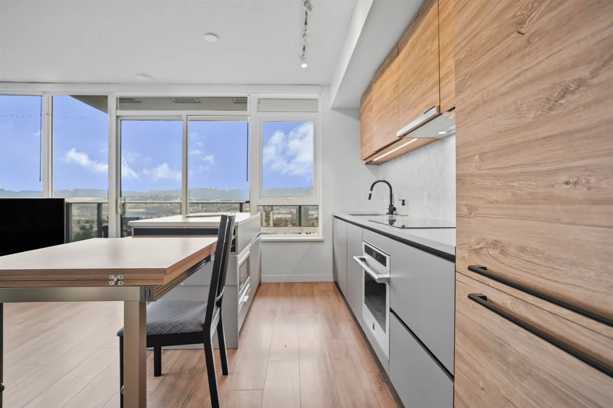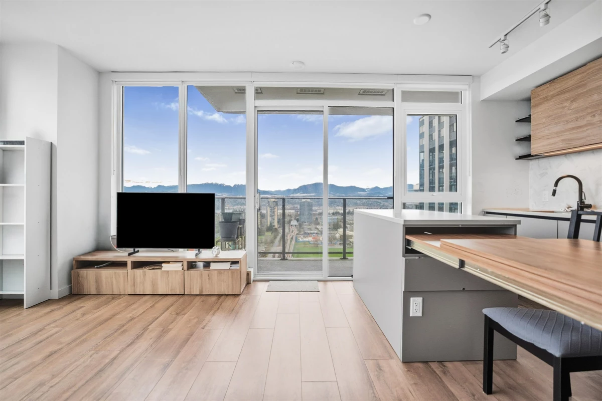 Built by renowned Bosa Properties, welcome to the best corner unit in the building! This 2 bedroom, 2 bathroom home offers bright north-west exposure with sweeping views and natural light throughout. The sleek, modern kitchen features quartz countertops, premium appliances, & an expandable dining table and featuring two balconies—a private balcony off the primary bedroom and a balcony extending from the main living area. This unit includes 1 parking stall & 1 storage locker. Residents enjoy access to a six-storey amenity building featuring a fitness centre, spin and yoga studios, outdoor pool with BBQ area, multiple meeting rooms, quiet workspaces, and a 24-hour concierge. You’re just steps from the SkyTrain, shopping, dining, and top educational institutions including SFU and UBC.