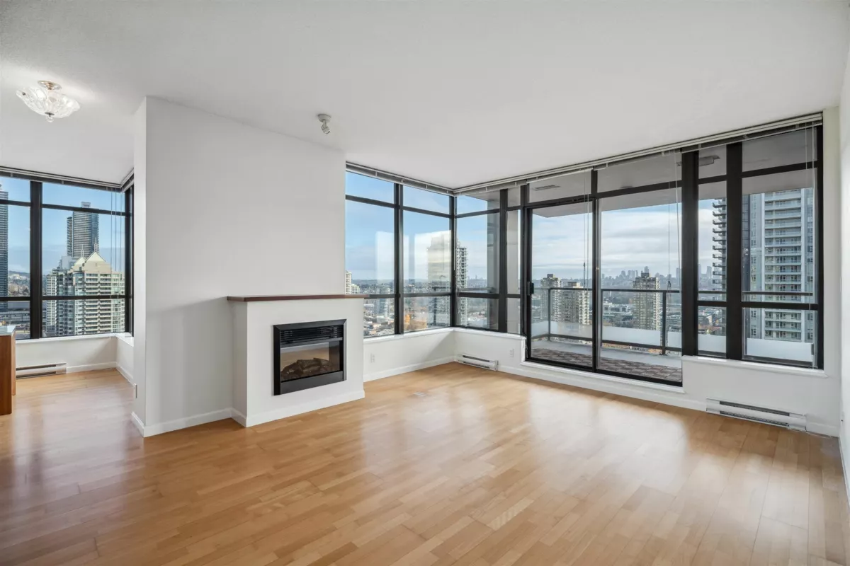 SUB-PENTHOUSE HOME 2 bedroom 2 bathroom 1,103 interior sqft w/ very private 4 homes on the floor only. 4 CAR PARKING included (tandem)! This corner unit faces a bright South & East exposure, open living spaces, tons of natural light. Featuring 2 extra large patios off the living-room and primary bedroom. The primary bedroom is EXTRA large sized. Gourmet kitchen with large granite island 5 piece whirlpool s/s appliances, large dining area, beautiful oak neutral coloured flooring. 9" ceilings, electric fireplace. Amazing amenities include o/d pool, hot tub, gym, playground, media room, lounge & guest suites. Walking distance to Gilmore skytrain station, Amazing Brentwood Mall. Storage Locker included! Perfect for a family home.