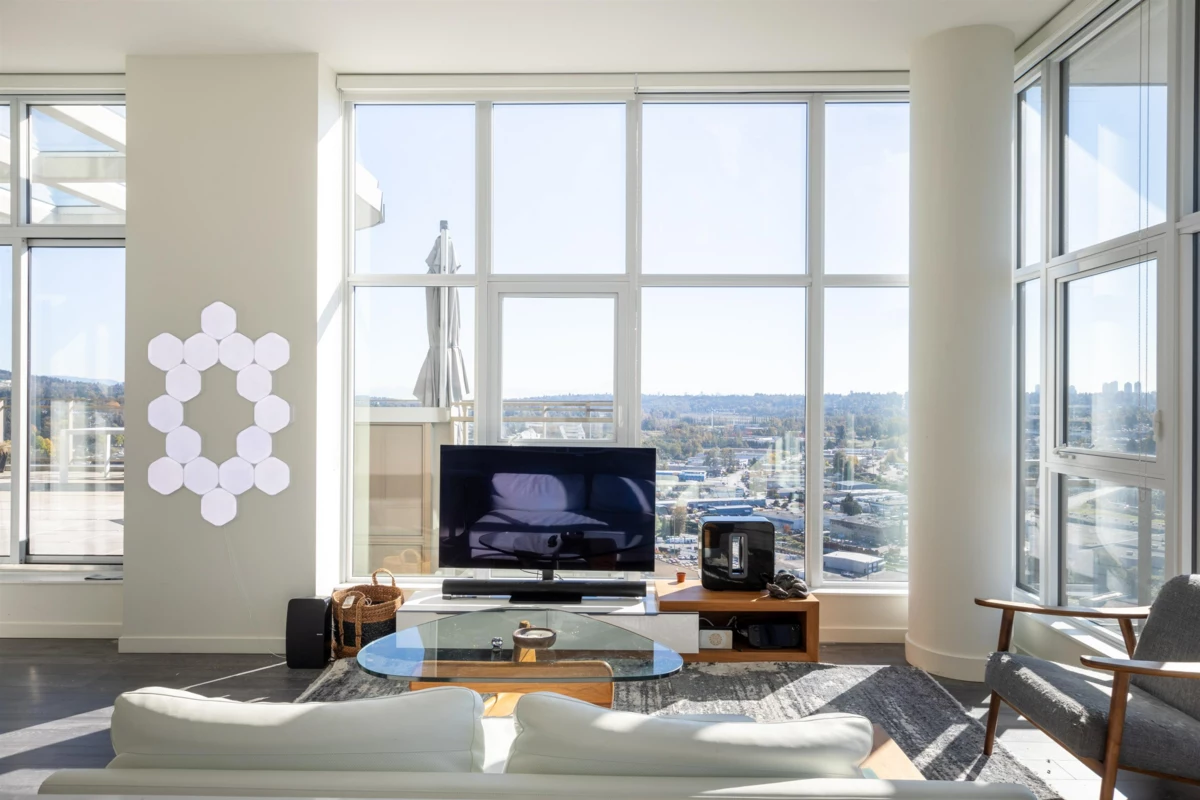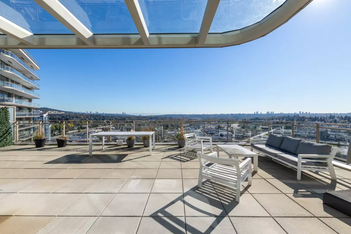 Take in the Burnaby skyline atop Etoile, one of the rare luxury residences at Brentwood. This spacious penthouse features a 1330 sq.ft. living space and 1165 sq.ft. wrap around terrace, open concept kitchen and living room perfect for entertaining. Large floor to ceiling windows and 10 ft ceilings frame the elegant and spacious living space. The kitchen features premium Bosche built in appliances. The washrooms are beautifully tiled and feature wide vanities with double sinks and rainforest showerheads. The bedrooms feature plenty of closet storage and the third bedroom can be used as a den or home office.