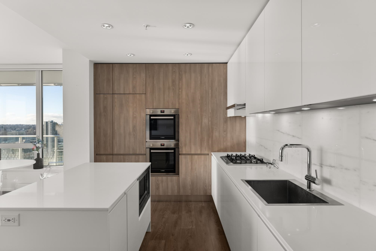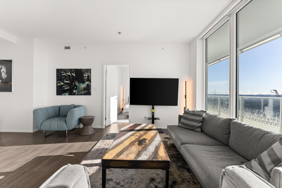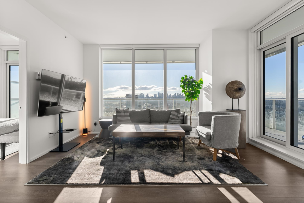 Stunning 3-bedroom, 2-bath SOUTHWEST CORNER UNIT on the 26th floor of Brentwood Towers 3 by renowned Shape Properties. This bright, open-concept home features a gourmet kitchen with high-end Bosch appliances and a gorgeous center island. Enjoy an exceptional nearly 500 sq ft wraparound deck (south and west sides of building) with panoramic views from the North Shore Mountains all the way to Mount Baker. World-class amenities include a fitness centre, yoga studio, games room, outdoor BBQ lounge, private dining spaces, guest suite, 24-hour concierge, and an elegant lobby with five high-speed elevators. Steps to Brentwood Mall, SkyTrain, shops, and dining. CHECK OUT THE VIDEO TOUR!