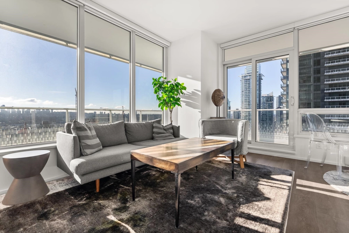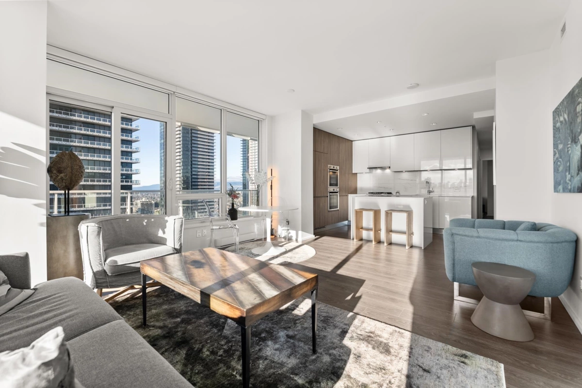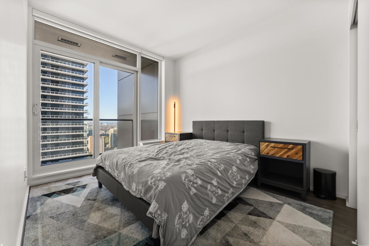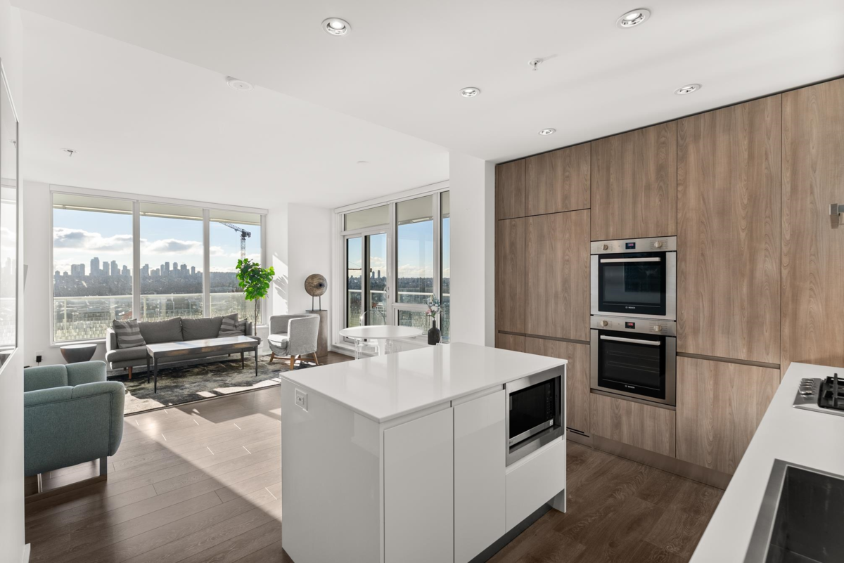 Stunning 3-bedroom, 2-bath SOUTHWEST CORNER UNIT on the 26th floor of Brentwood Towers 3 by renowned Shape Properties. This bright, open-concept home features a gourmet kitchen with high-end Bosch appliances and a gorgeous center island. Enjoy an exceptional nearly 500 sq ft wraparound deck (south and west sides of building) with panoramic views from the North Shore Mountains all the way to Mount Baker. World-class amenities include a fitness centre, yoga studio, games room, outdoor BBQ lounge, private dining spaces, guest suite, 24-hour concierge, and an elegant lobby with five high-speed elevators. Steps to Brentwood Mall, SkyTrain, shops, and dining. CHECK OUT THE VIDEO TOUR!