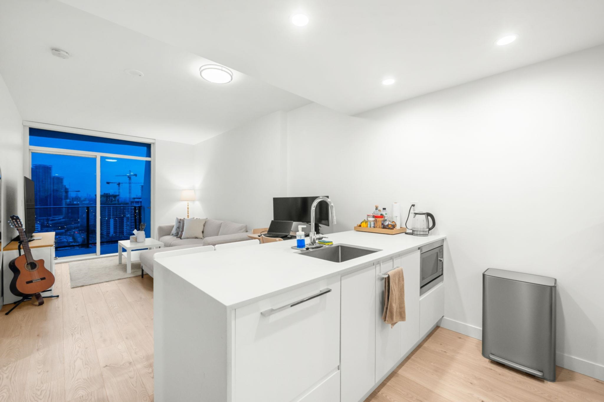 Perched high above the city, this elegant one-bedroom residence offers a rare sense of calm. Wake up to golden morning sun and unwind on your private balcony with views that stretch to the horizon. The interior feels incredibly spacious thanks to high ceilings and a clever, efficient layout designed for effortless living. With year-round A/C and premium finishes, comfort is never compromised. At Akimbo, life is simplified with luxury amenities and a location that puts the best of Burnaby—from fine dining to rapid transit—within a five-minute stroll. Modern, quiet, and perfectly connected