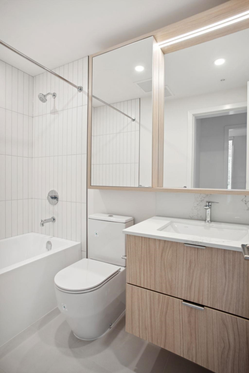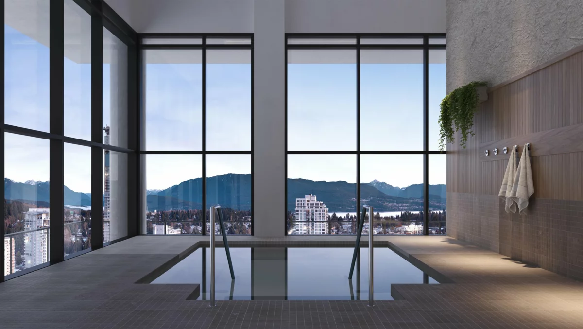 Welcome home to JINJU in West Coquitlam, developed and built by Anthem Properties. Located steps away from the Burquitlam SkyTrain station, JINJU offers unparalleled walkability to shopping amenities, restaurants, cafes, the new YMCA community centre, and Cottonwood Park. Step into your own mountain view hot tub and 28th floor spa with infrared sauna, charcoal cool room, and warm salt meditation room. This East facing 1 bed home offers breathtaking morning views. Our layout enhances every inch of space with 9" ceilings, includes a heat pump for ultimate cooling and heating temperature control. The expansive entry and thoughtful kitchen layout allows for great organizational space. Move in Ready.