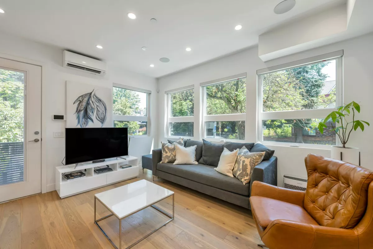 SHOW HOME READY!!Nestled on a quiet, residential street in the heart of Mount Pleasant, this tri-plex is an extension of the neighbourhood’s vibrant energy. Minutes to MAIN STREET. NO STRATA FEES. Sunny corner unit, bright w/windows on 3 sides. Contemporary interiors, enhanced by wide plank flooring throughout, modern luxury s/s appliances incl. GAS COOKTOP & A/C. 3 bdrm/4 bath w/massive crawl space. Home Boasting 1285 sqft. BONUS North-facing fully fenced yard(perfect for kids or pets) & upper wrap around deck. Perfect for someone seeking a functional yet stylish urban living home. Neighbourhood is packed with craft breweries, vintage boutiques, award-winning rest. & coffee shops. ONE secured garage parking. This will be a fabulous place to call home.
