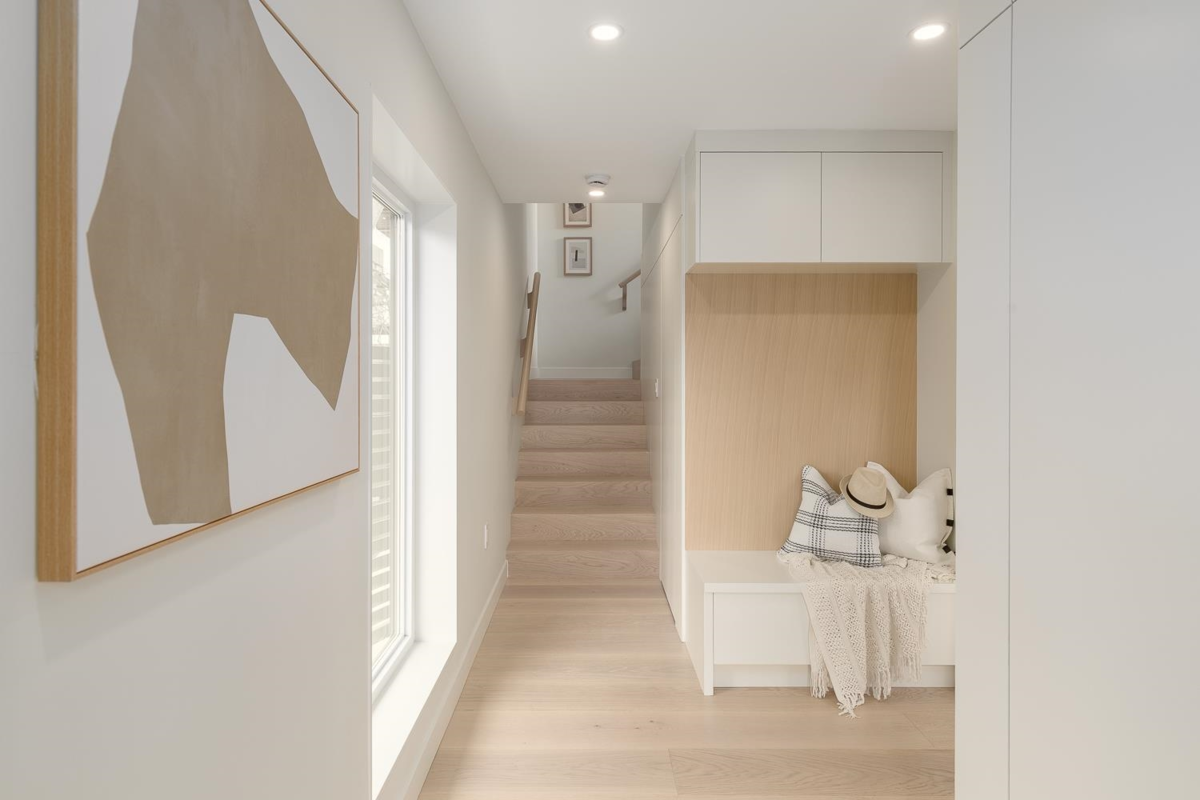 Welcome to Wales Park by VanMosa Properties—an exclusive collection of boutique park side homes offering exceptional quality and craftsmanship, designed by Architrix Studio & built by Glenmark Homes. This 2-bedroom home is thoughtfully designed with Caesarstone countertops, white oak cabinetry, Fisher & Paykel appliances, Brizo luxe gold fixtures, and Italian Falmec ventilation. Enjoy air conditioning, automated lighting, in-ceiling speakers, sensor-activated cabinet lighting, soundproofing, custom built-in closets, crawlspace storage, and dedicated parking. A stunning 157 sq ft balcony invites indoor-outdoor living, with sweeping parkside and mountain views in one of East Vancouver’s most connected and vibrant communities.