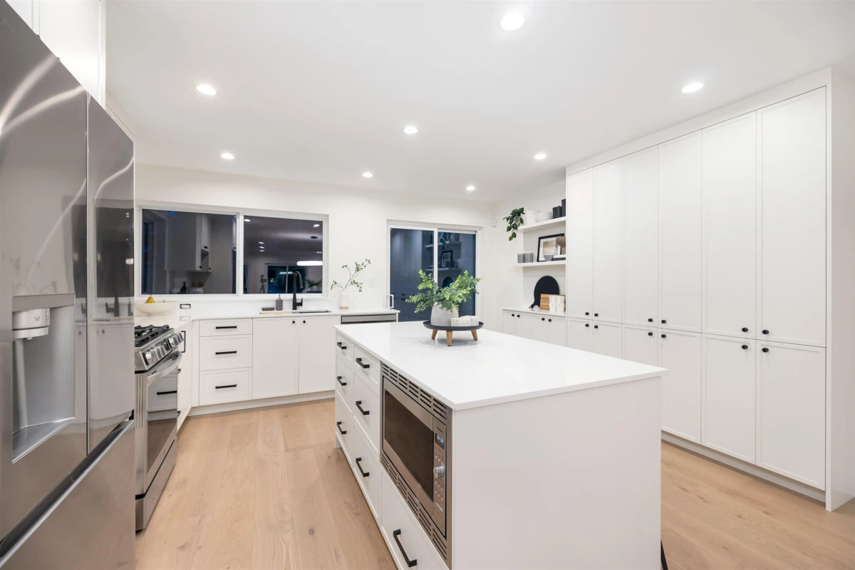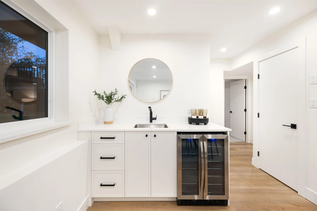 Amazing opportunity on a quiet street! FULLY RENOVATED 5 bed, 4 bath, home has been redesigned with modern finishes & thoughtful details throughout. The main level offers a bright, open layout anchored by a stunning feature fireplace & a chef’s kitchen with quartz counters, stainless steel appliances & a large island. Seamless indoor-outdoor flow leads to expansive decks and a flat yard perfect for entertaining. Upstairs, the primary suite boasts a walk-in closet & luxurious ensuite, while 2 additional bedrooms share a Jack & Jill bath. The lower level is easily suitable, featuring a spacious rec room, wet bar, two bed, full bath, & laundry. A double tandem garage & excellent storage complete this turnkey home close to schools, parks, Lynn Valley. OPEN SAT 2-4pm Feb 7th