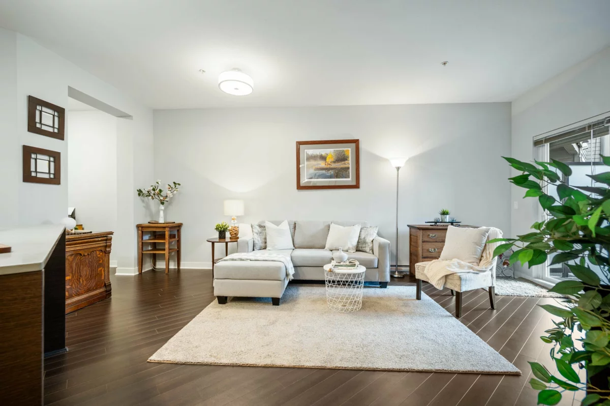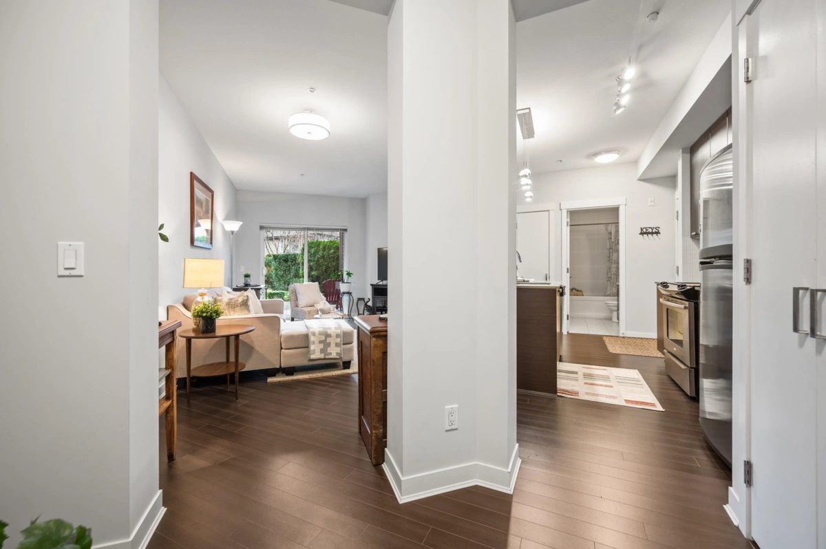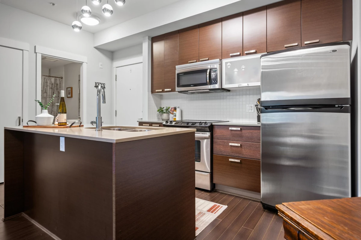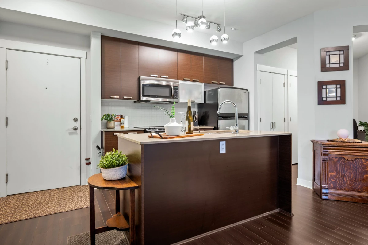 WELCOME HOME to this light, bright, spacious 1 bedroom, 1 bathroom PLUS DEN unit with large, PRIVATE, gorgeous walk-out patio/courtyard area to enjoy extra outdoor living space. This very well maintained home offers laminate flooring, quartz counters, stainless appliances and an open den. Calera offers a gym and exercise centre, and is just steps to shops, coffee, restaurants, transit and close to the upcoming sky train expansion. Call today and make this your new home!