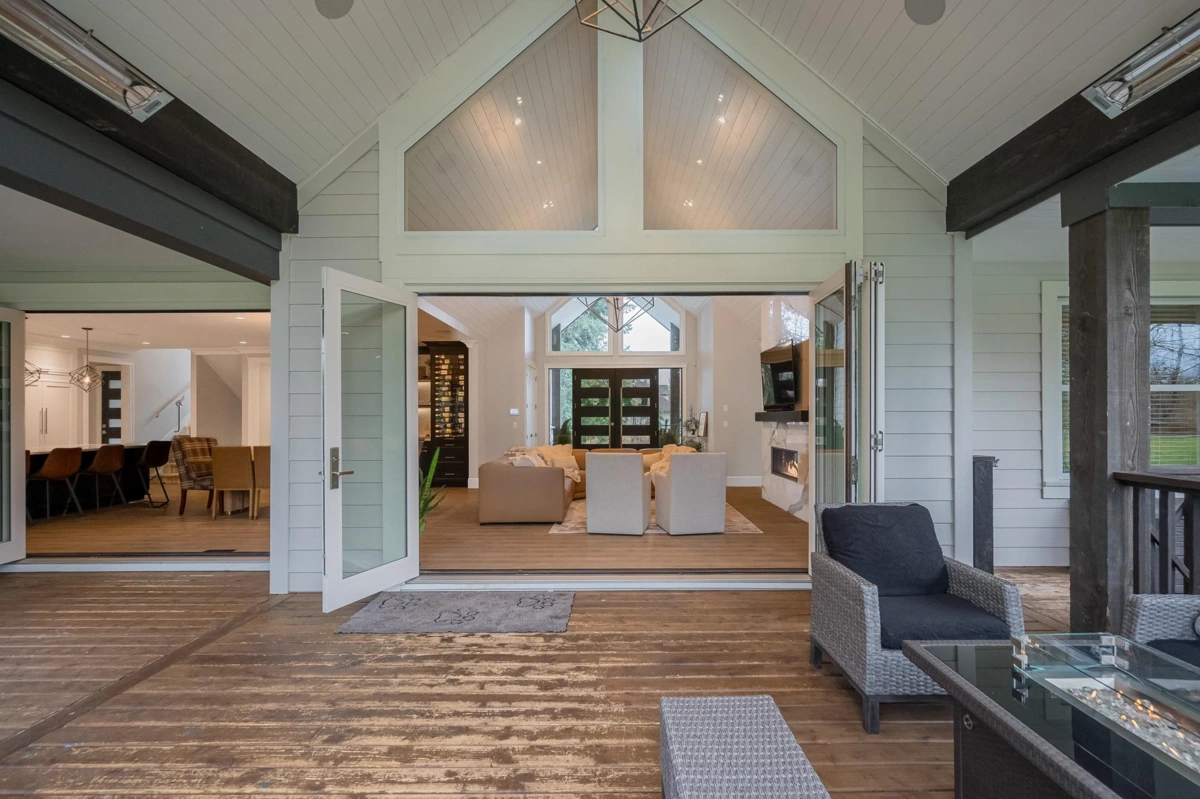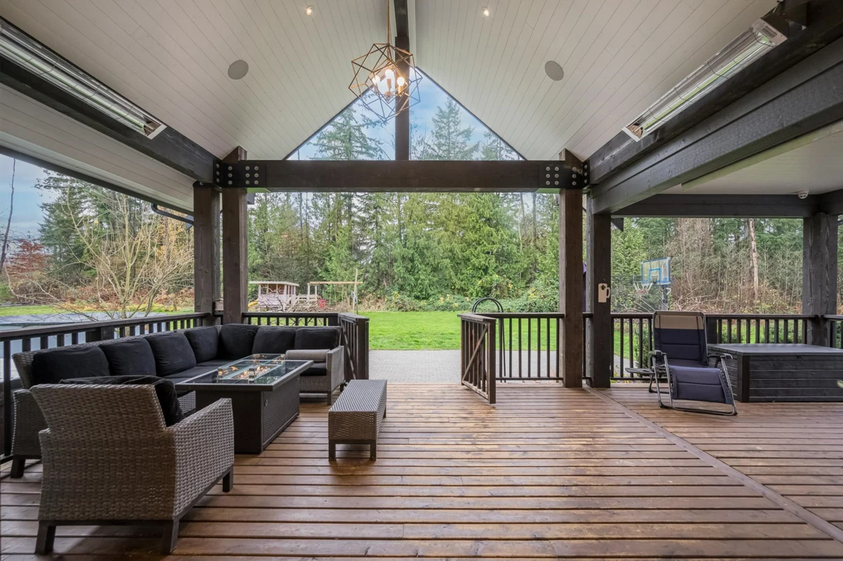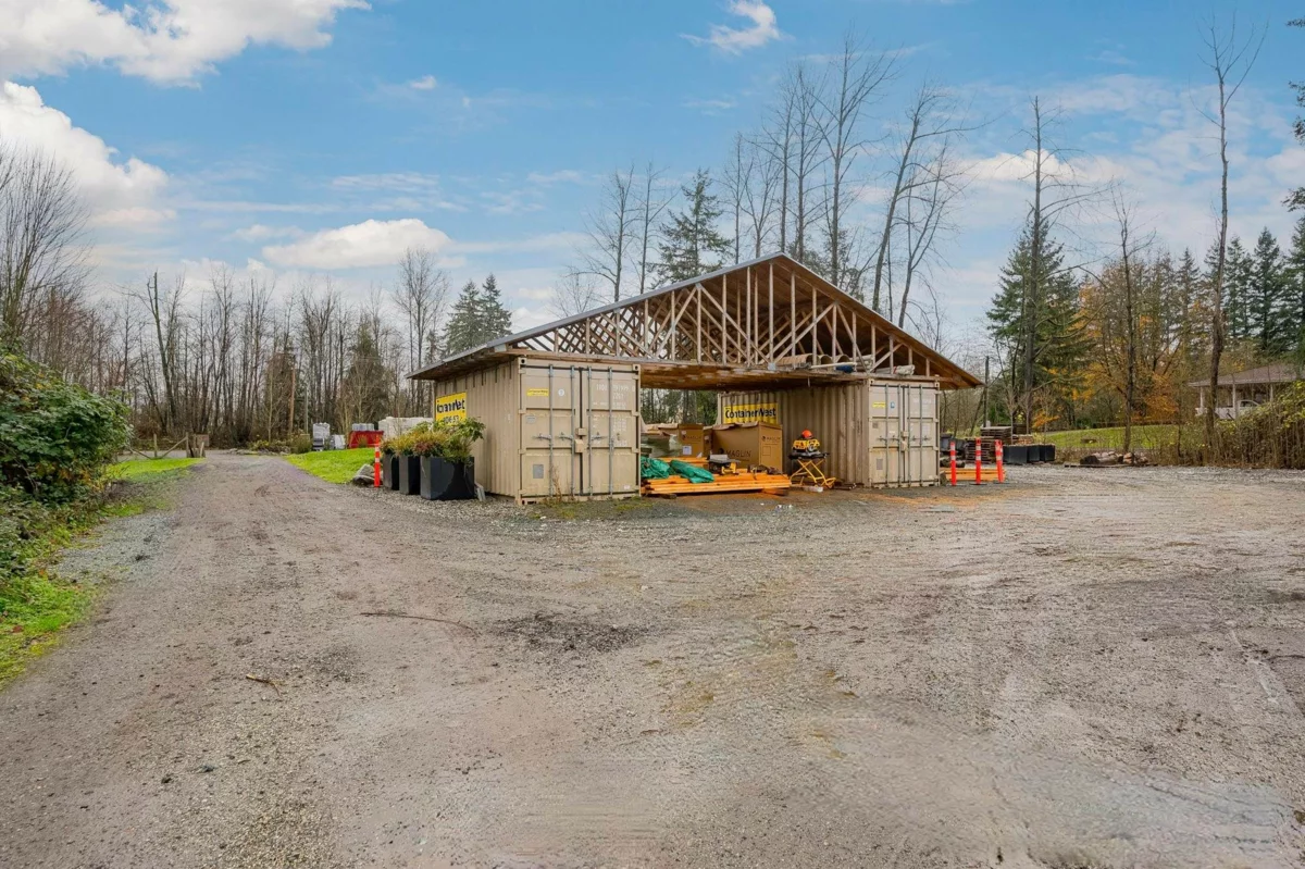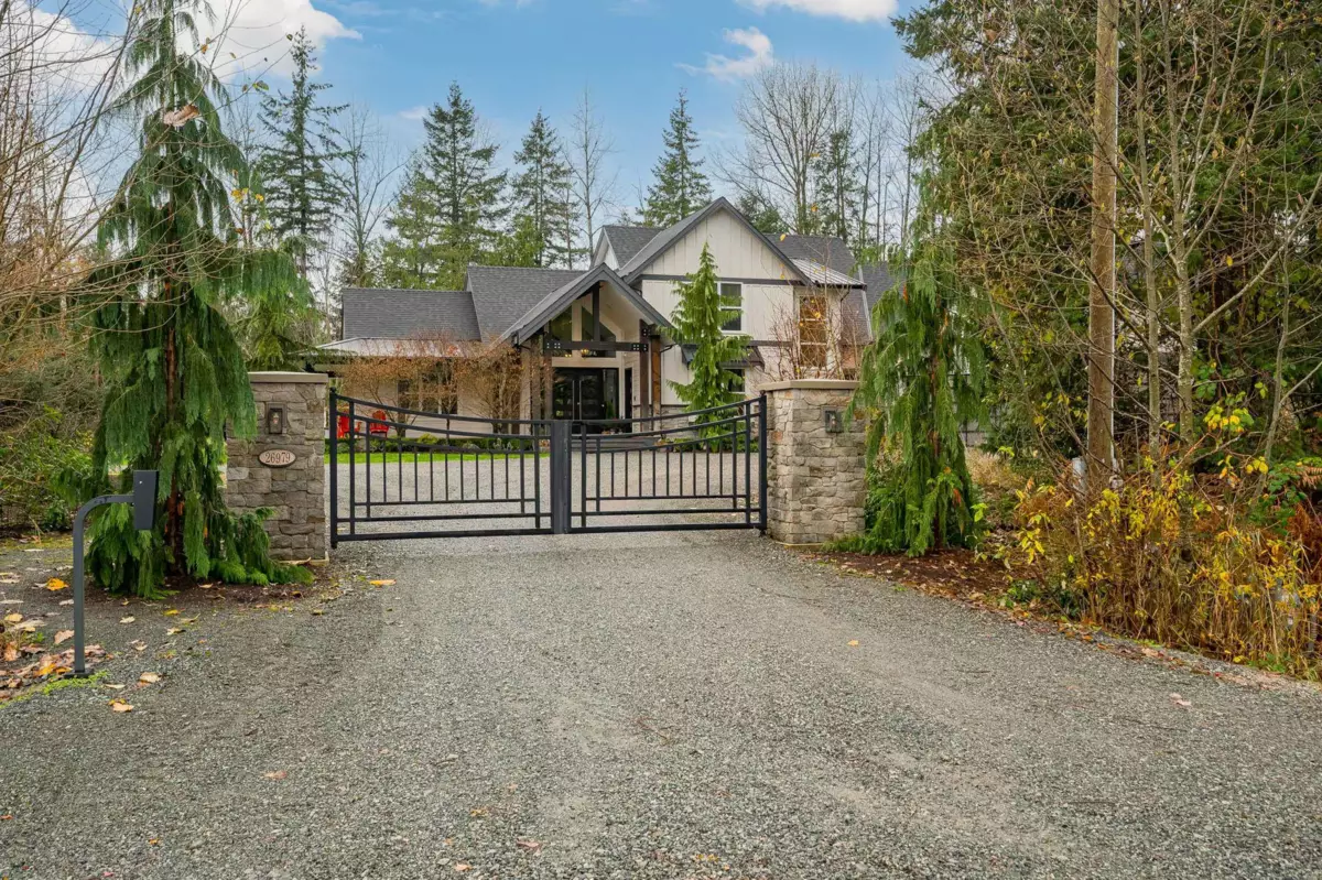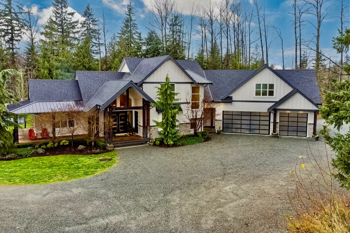 3.76 ACRES-3 RESIDENCES-NO THRU ROAD-NORTH LANGLEY-PRIVATE & GATED. This luxurious custom 2-storey with basement features soaring vaulted ceilings, a gourmet chef’s kitchen with pantry, wet bar with wine cooler, builtin coffee machine and all high end Thermador appliances quartz and hardwood.Refined main floor living spaces including formal living, family, office, and hobby/study rooms.The upper level hosts a lavish primary retreat with soaker tub, double-sided fireplace, plus 3 spacious bedrooms, 2 baths, and huge games room.The lower level offers an elegant 1-bed suite with den and media room. Finished with a triple garage, expansive heated wraparound ultimate entertainment deck-BONUS 3-bed/2-bath modular home with fenced yard and private driveway.Container workshop and detached carport.