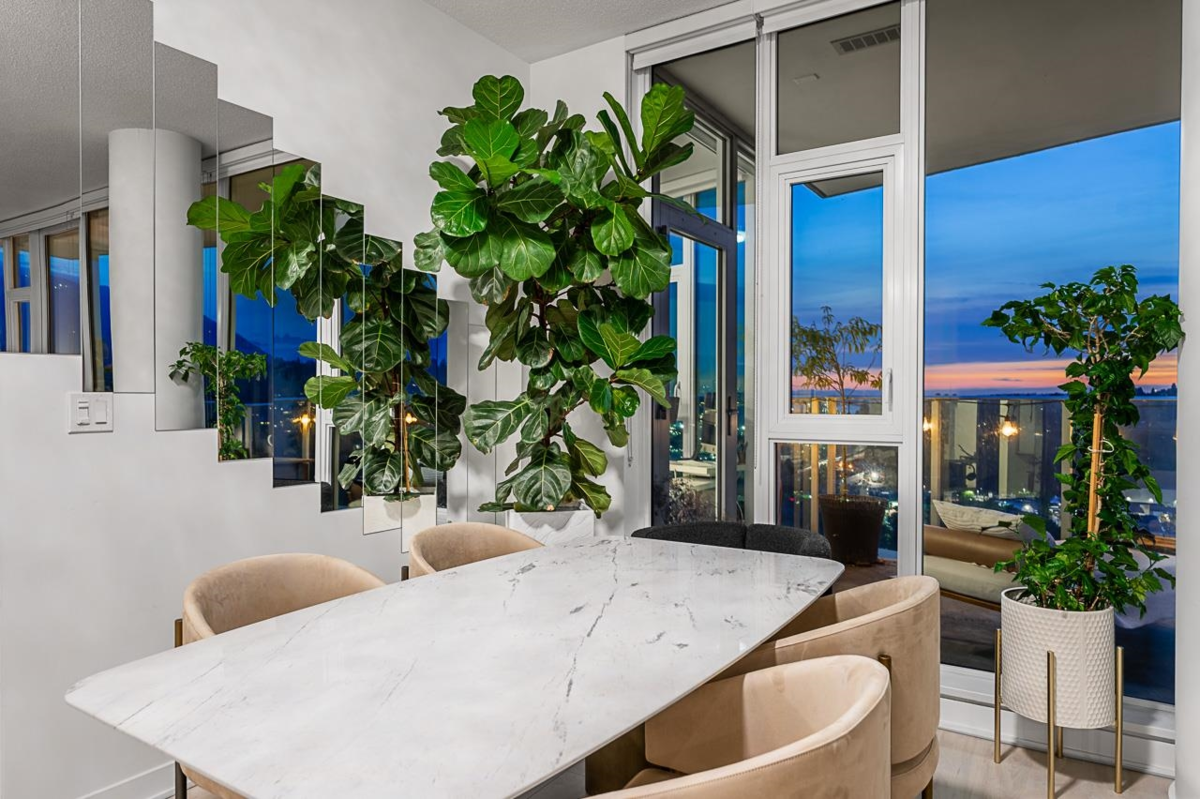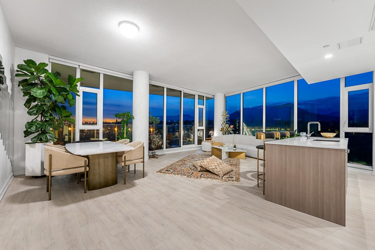Hunter’s Trophy Penthouse - Experience the Thrill of the View. Capture stunning panoramic vistas of the North Shore Mountains, harbour, and city lights from every angle. Graciously positioned to optimize privacy, the home features floor to 10’ ceiling windows, an ideal 2-bed / 2-bath layout, topped off with an outdoor oasis spanning over 1,000 square feet. Relax or entertain in style with the best of North Vancouver close at hand - Seylynn Park, tennis courts, cafes, breweries, shopping & easy access to downtown. The elegant interior offers A/C, Fisher & Paykel appliances, quartz countertops & primary ensuite & walk-in. 3 Secured parking stalls, storage & luxe building amenities, including a fitness centre with steam & sauna rooms, complete the package.