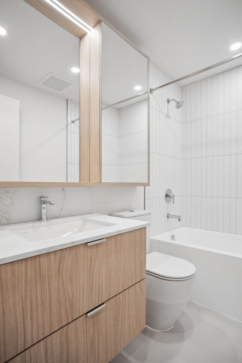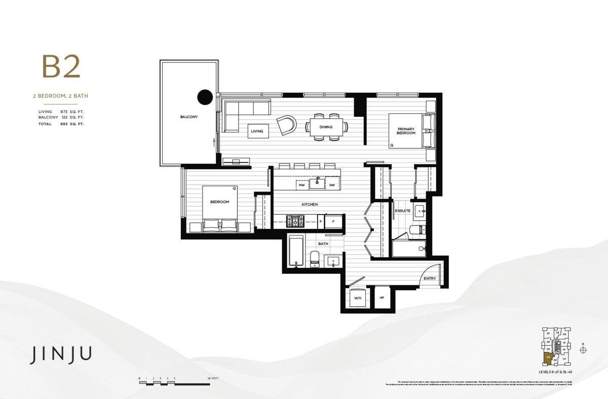 Welcome home to JINJU in West Coquitlam, developed and built by Anthem Properties. Located steps away from the Burquitlam SkyTrain station, JINJU offers unparalleled walkability to shopping amenities, restaurants, cafes, the new YMCA community centre, and Cottonwood Park. Step into your own mountain view hot tub and 28th floor spa with infrared sauna, charcoal cool room, and warm salt meditation room. This South West corner 2 bed home offers breathtaking city views and a private balcony to enjoy morning and night. Our layout enhances every inch of space with 9" ceilings, includes a heat pump for ultimate cooling and heating temperature control. The large kitchen counter seats 4 comfortably and is perfect for entertaining. Move in Ready.