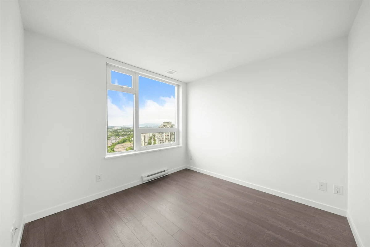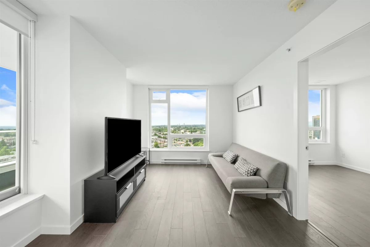 Discover stunning views and modern living at Wall Centre Central Park! This 2 beds, 1 bath SOUTHWEST facing, CORNER unit offers UNOBSTRUCTED PANORAMIC VIEWS. Features cocoa wood-tone laminate floors, sleek quartz countertops, and stainless-steel appliances with gas range, and large balcony. Convenient location —just steps to Joyce-Collingwood SkyTrain, parks, and vibrant Metrotown shopping. Enjoy top amenities including a fitness centre, 60-ft lap pool, hot tub, rooftop terrace, and garden. Comes with 2 PARKING SPACES and 1 LOCKER! Book your appointment today for a showing!