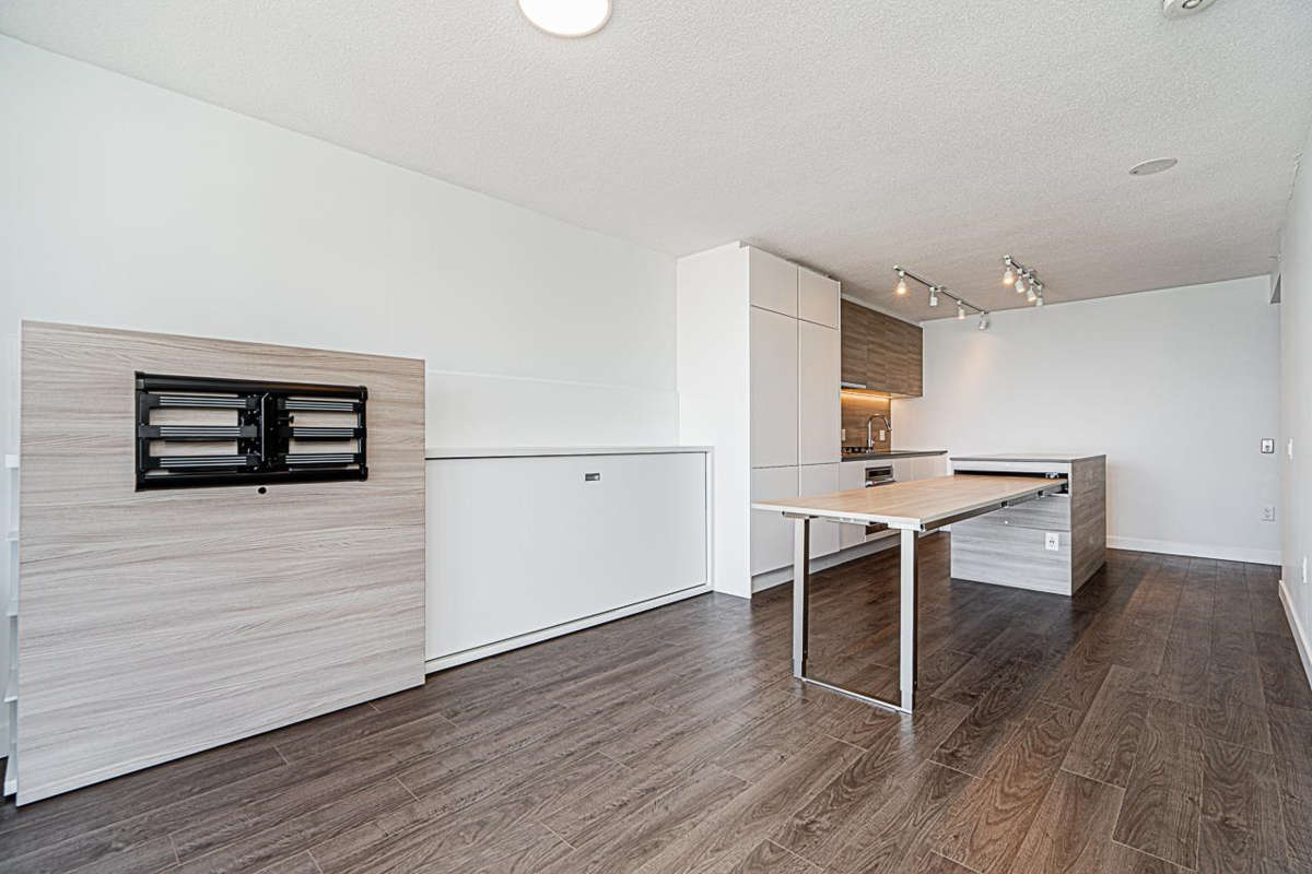 Riversky 1 by Bosa! This stunning waterfront high-rise is located in the heart of New Westminster Quay. This spacious 1 bed, 1 bath home offers 575 sq ft of open-concept living with views of the Fraser River and mountains. Large windows fill the space with natural light. Features include a built-in extendable dining table and a floating TV panel that slides to reveal extra space for a pull-out bed. Amenities include a gym, yoga studio, entertainment lounge, rooftop patio, terrace, and bike room. Steps to the Boardwalk, River Market, parks, shopping, and SkyTrain. Includes 1 parking stall and a storage locker.