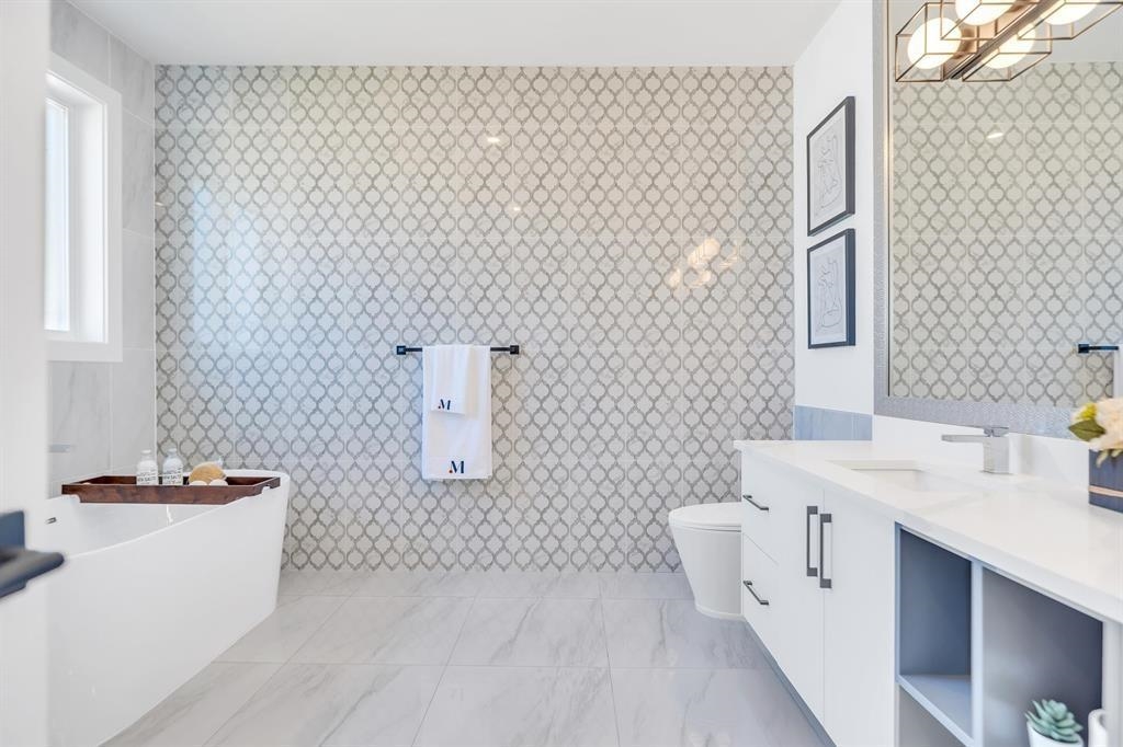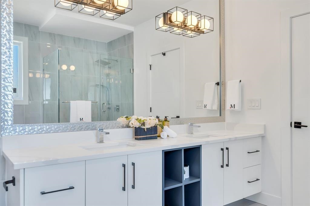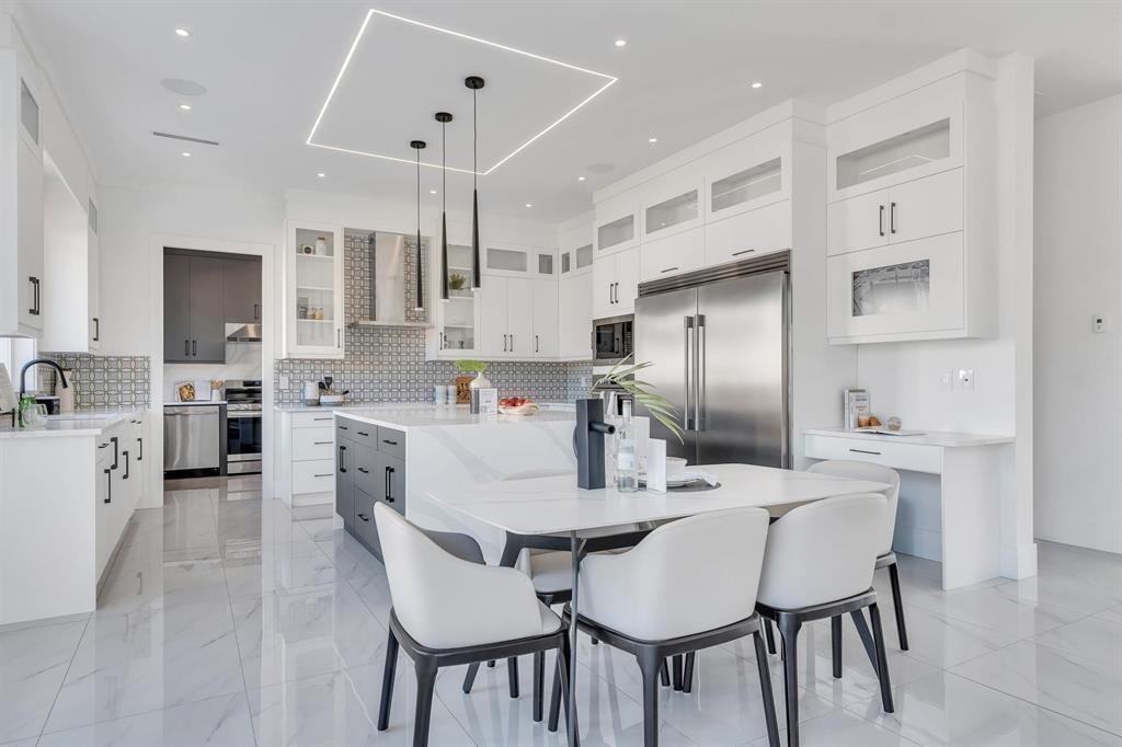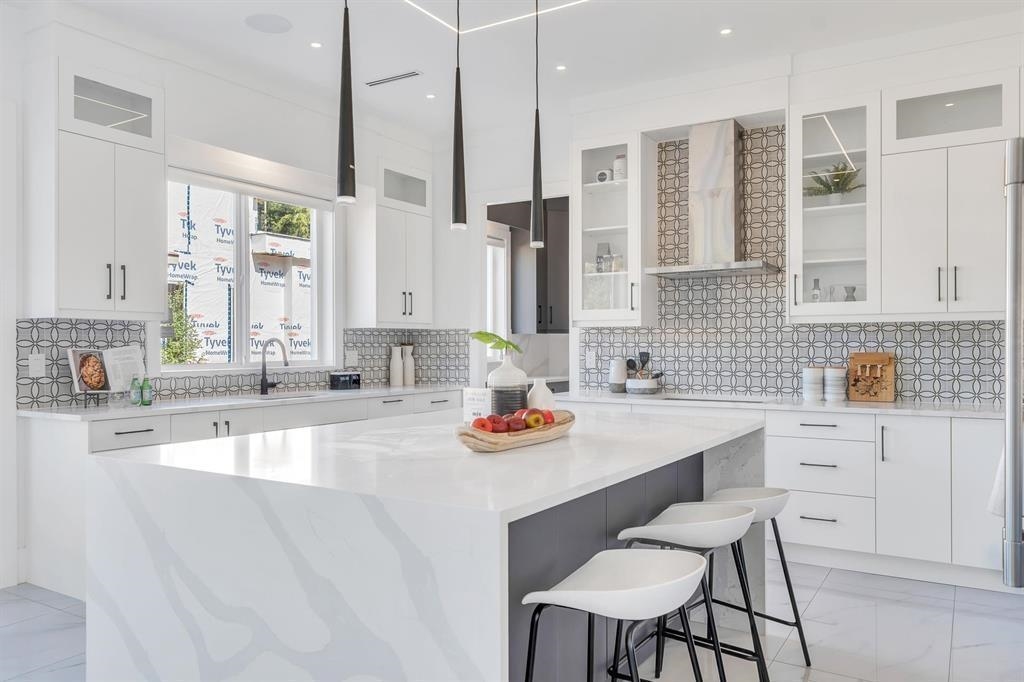 WOW! This 8 bed, 9 bath custom home spans nearly 5,800 sq ft of pure luxury. The main floor boasts soaring ceilings, oversized windows, a spacious living/dining area, family room, gourmet kitchen with quartz counters, SS appliances, WOK kitchen, plus a one bedroom with ensuite, office and laundry. Upstairs: 4 bedrooms, each with its own ensuite and walk-in closet - including a stunning primary suite with a massive closet and spa-like bathroom. The basement features a theatre and powder room for the main home, plus a 2-bed legal suite and 1-bed unauthorized suite. Set on a 7,000+ sq. ft. lot with a wide, unique floorplan, top-tier finishes and a double garage. Prime location. Total showstopper. PICTURES FROM WHEN HOUSE WAS STAGED. THERE IS NO LONGER CONSTRUCTION BESIDE, FULLY FINISHED.
