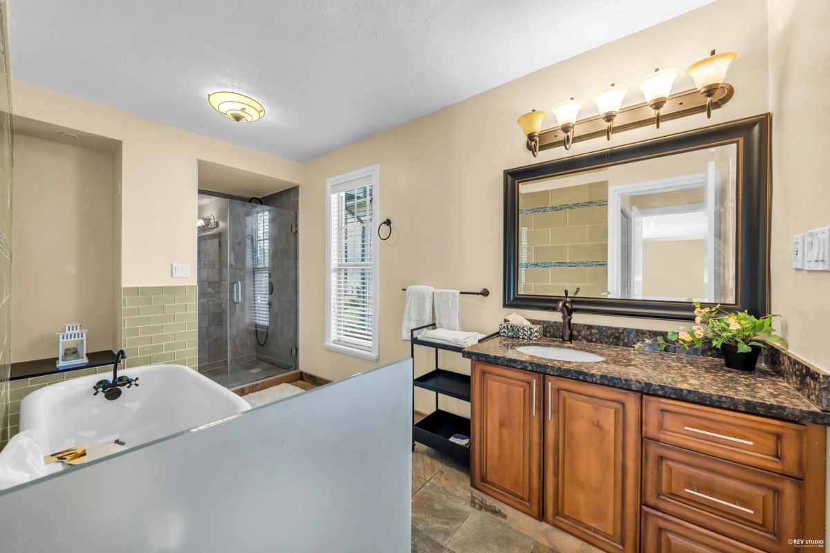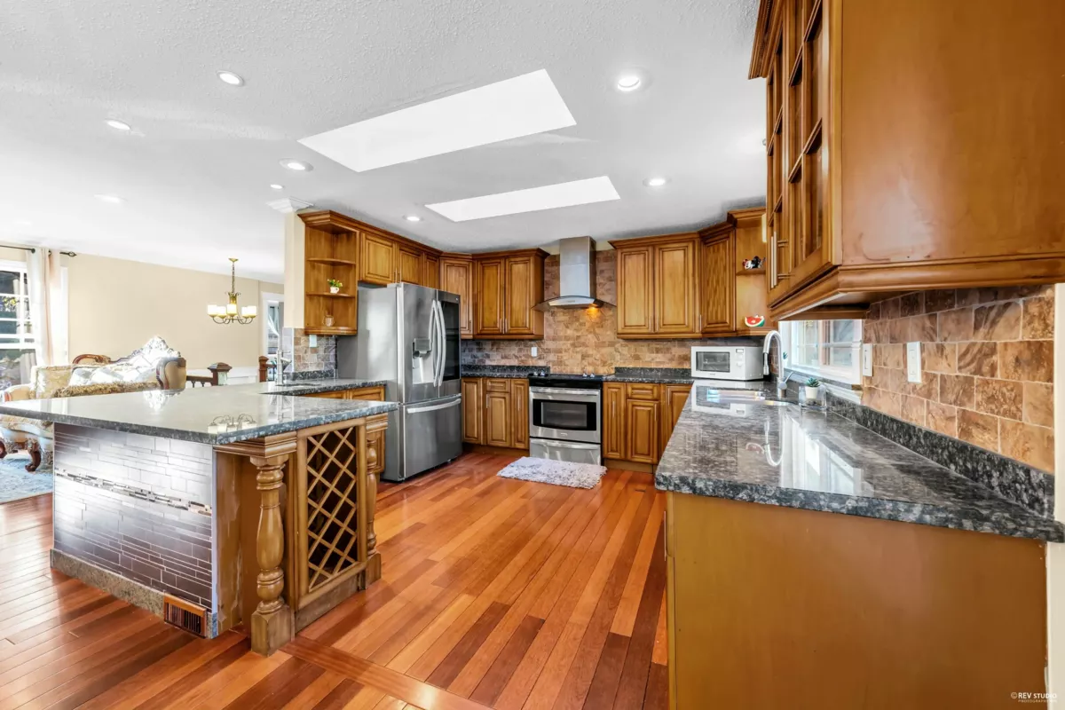 View to Mount Baker and City Center skyrise. sitting at the hilltop of Ranch Park, a flat South facing flat land with easy access to all amenities yet quiet and peaceful community. This well kept home has two levels. Westcoast style. Main level includes huge wrap around kitchen , granite countertop, skylight, french windows, fireplace. Family room walking out to the sundeck. Master bedroom also has an enclosed balcony. Huge master ensuite has a bathtub, and a shower room. The guess bedroom on the lower level also have a bathroom. Two bedroom rental suite is currently occupied by a happy tenant. School catchment Dr. Charles Best secondary is just two blocks away.