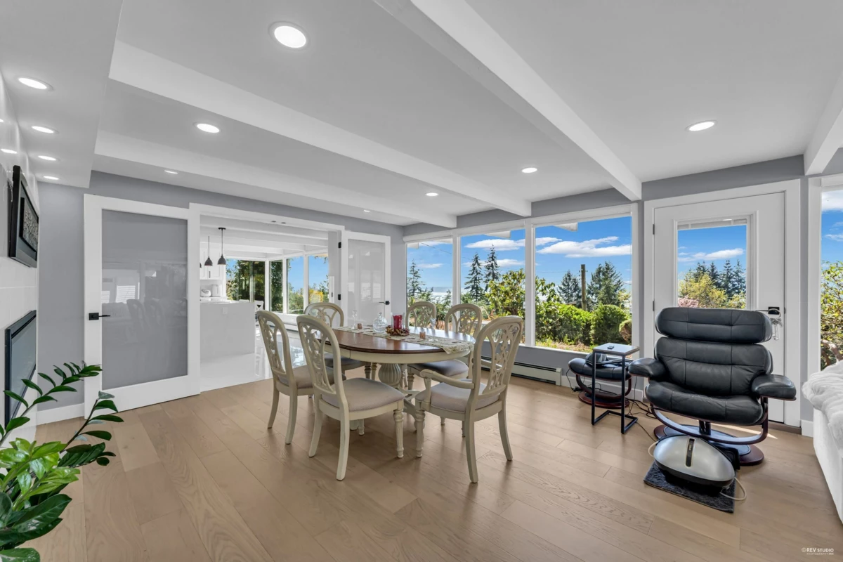 Experience breathtaking panoramic ocean and city views from this private estate, perfectly situated at the end of a quiet cul-de-sac. This completely renovated, custom built Lewis Post & Beam home is designed to maximize natural light with expansive windows on both levels framing unobstructed views. The main level features a grand formal living and dining room, kitchen, spacious recreation room, and executive style office. Upstairs boasts an exceptionally large family room and four well proportioned bedrooms for ideal family living. A private entry space with full kitchen offers potential as a self contained studio, while a fully separate one bedroom suite serves as a valuable mortgage helper. Plenty of parkings. Close to prestigious Collingwood School.